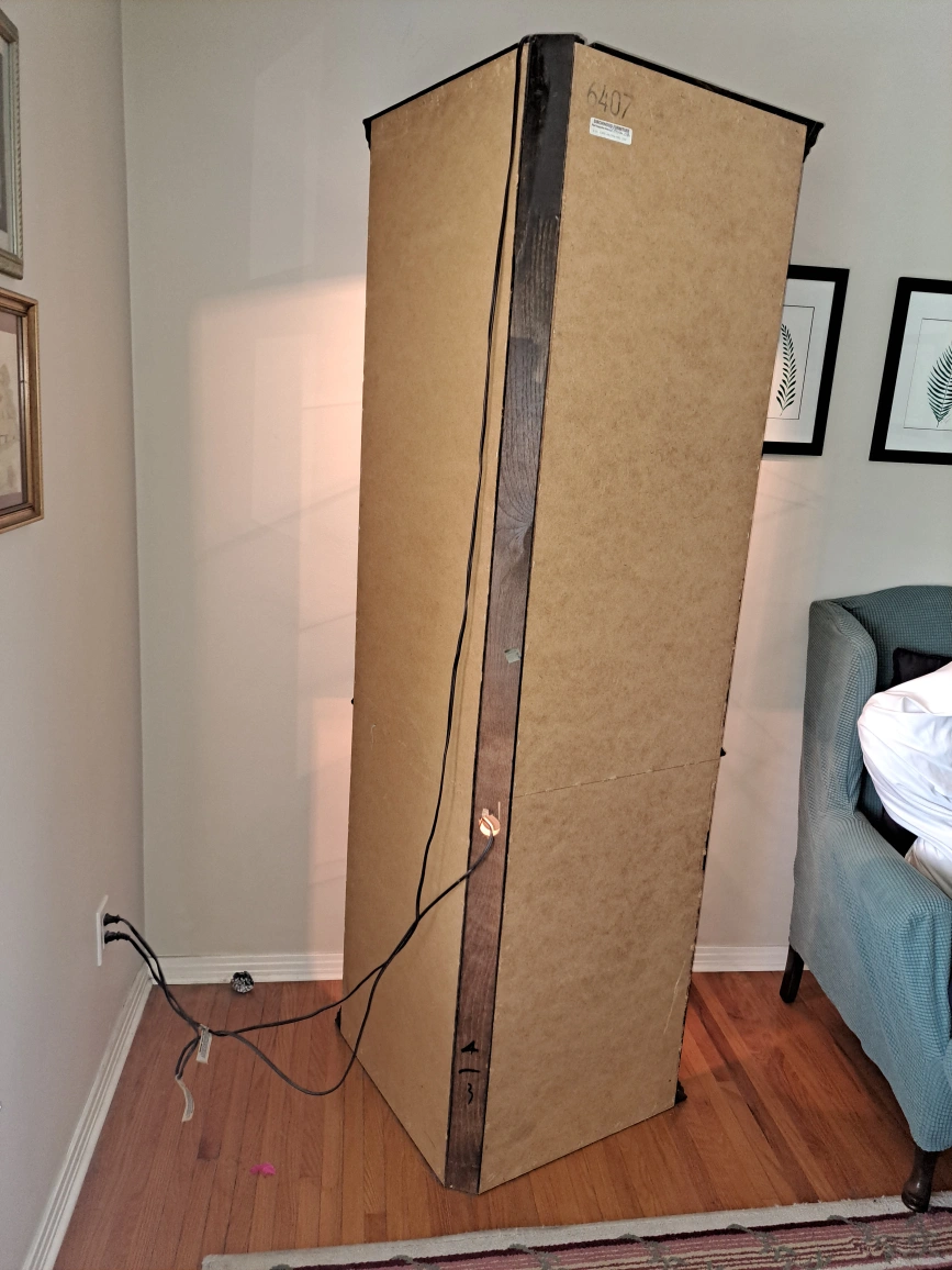- Dimensions73.5" tall 20.5" along the wall 1 side 33" across