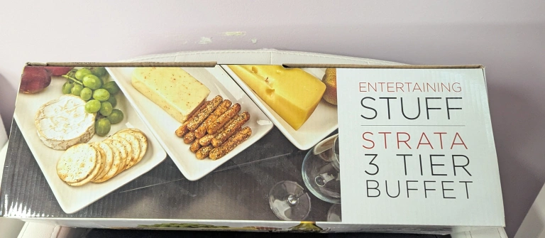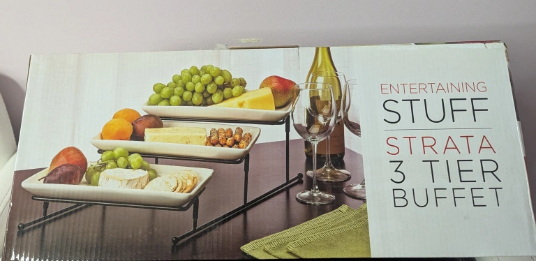 This Entertaining Stuff Strata 3 Tier Buffet is perfect for serving appetizers or desserts at your next gathering! It's in great condition and comes with its original box
