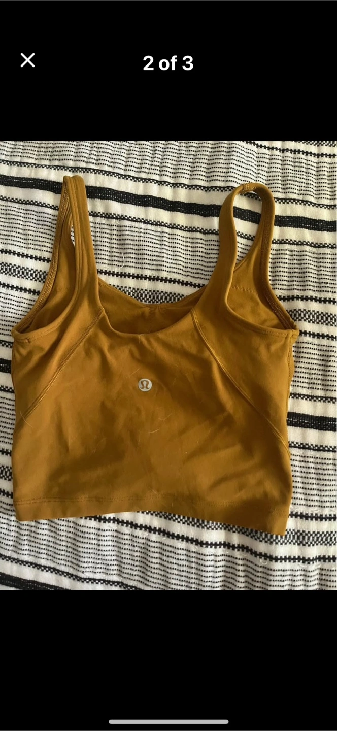 Selling a Lululemon tank top in a lovely brown colour! It's a size 0 and in great condition! Perfect for workouts or everyday wear