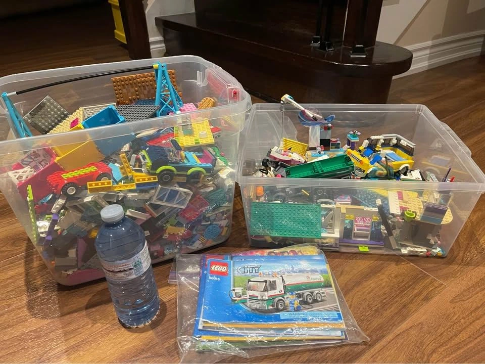 Two bins of original Lego , many sets, some of the booklets included. Water bottle for size reference . Great imagination for lots of building potential Only $100 for everything Pick up near Bathurst and Steeles in Thornhill