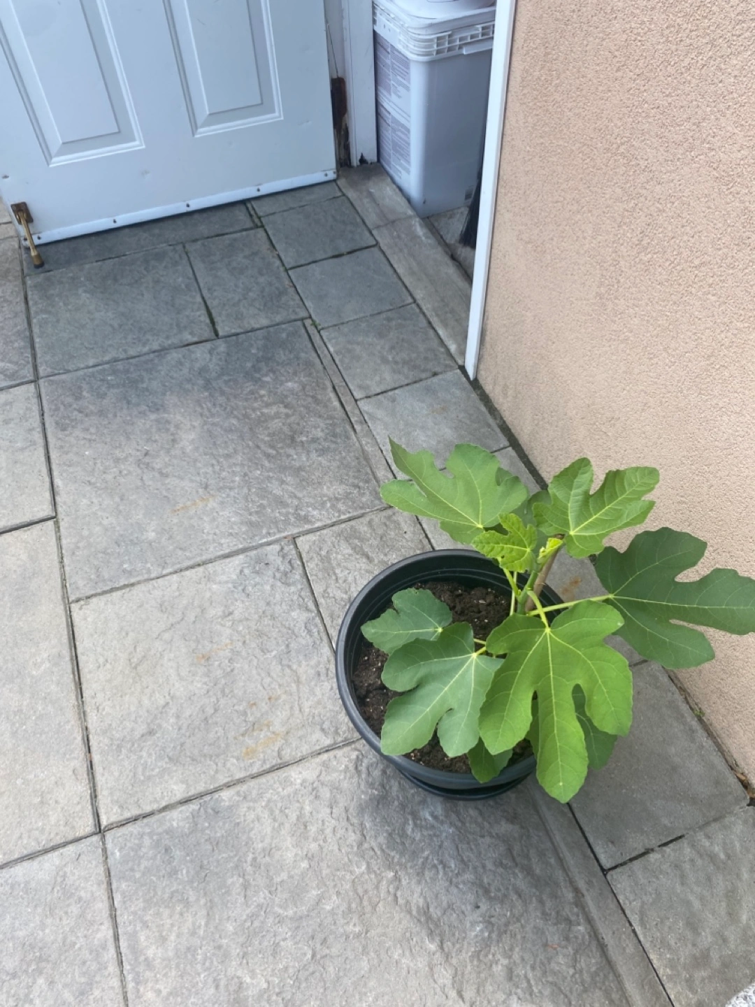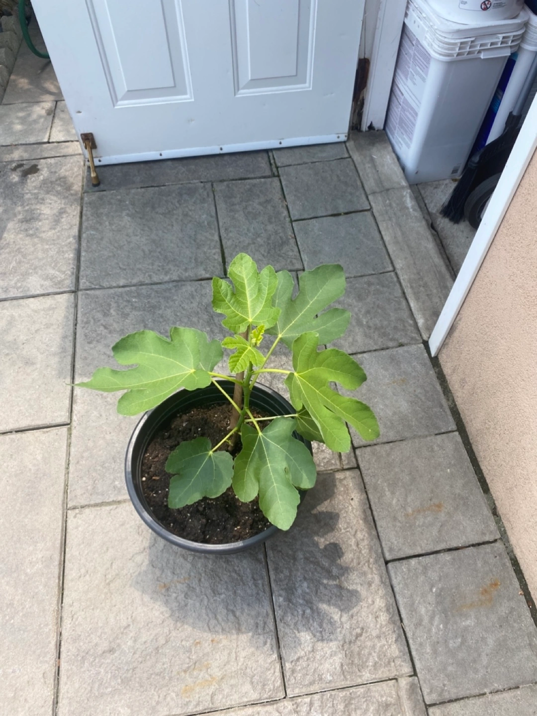 Selling a healthy fig tree plant in a pot. It's a lovely addition to any garden or indoor space. The plant is thriving and ready to be transplanted or kept in its current container