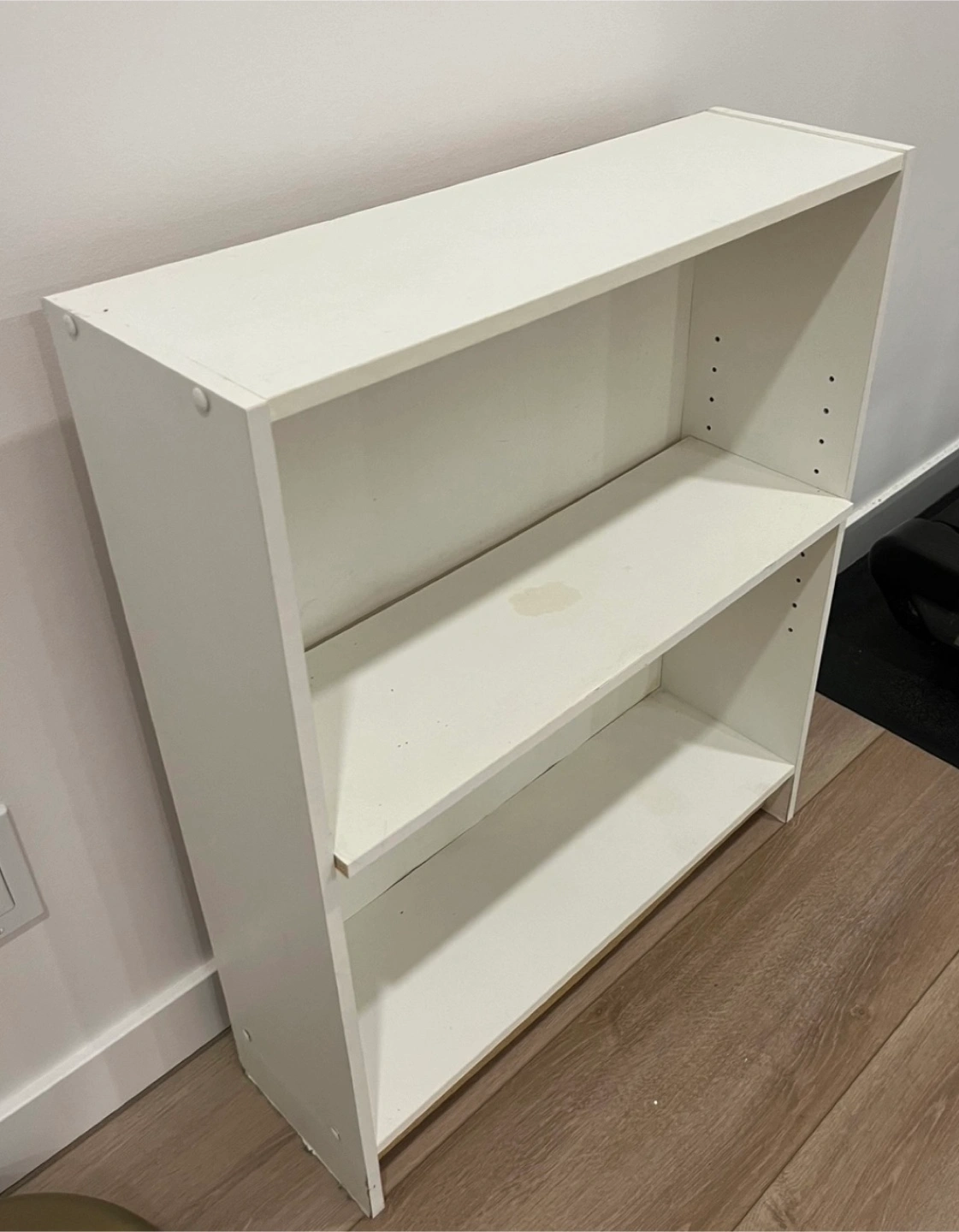 Selling a handy white bookshelf! It's perfect for organizing your books, displaying your favourite items, or just adding some extra storage space to any room. It's in good condition and ready for a new home!