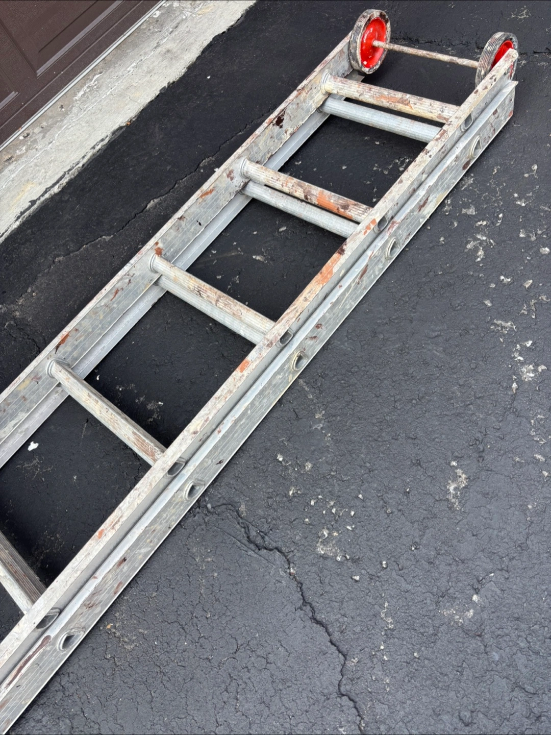 Selling an aluminum extension ladder. It shows some signs of wear & usage, but it's still sturdy and reliable for various tasks around the house or on the job site. It has wheels on one end for easy movement. Pickup in North York near Don Mills & Finch