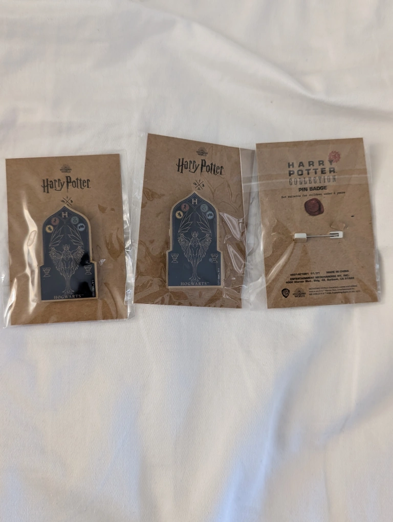 Selling these Harry Potter pin badges, brand new and still in their original packaging! They're from the Harry Potter Collection and feature designs related to Hogwarts. Perfect for any Harry Potter fans. For Harry Potter collectors $8 each $20 for all