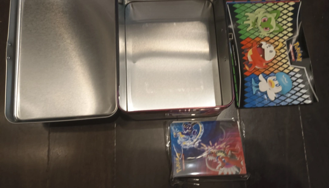 Selling a Pokémon Trading Card Game tin. It comes with a set of card sleeves as well!