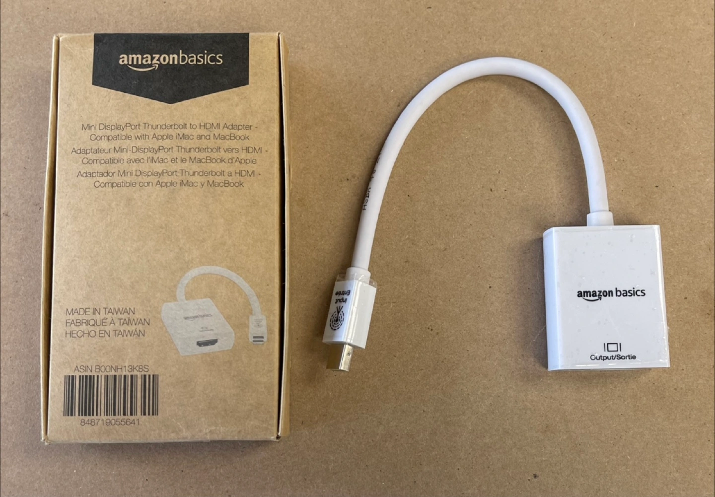 Brand new AmazonBasics Mini DisplayPort Thunderbolt to HDMI Adapter! It's compatible with Apple iMac and MacBook.