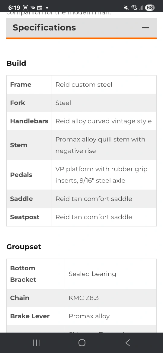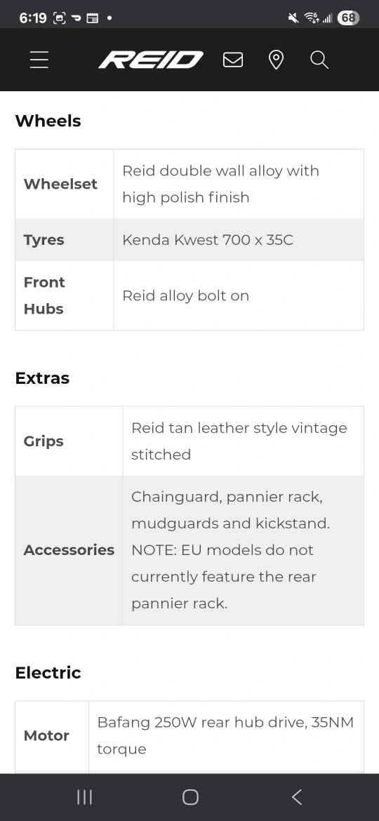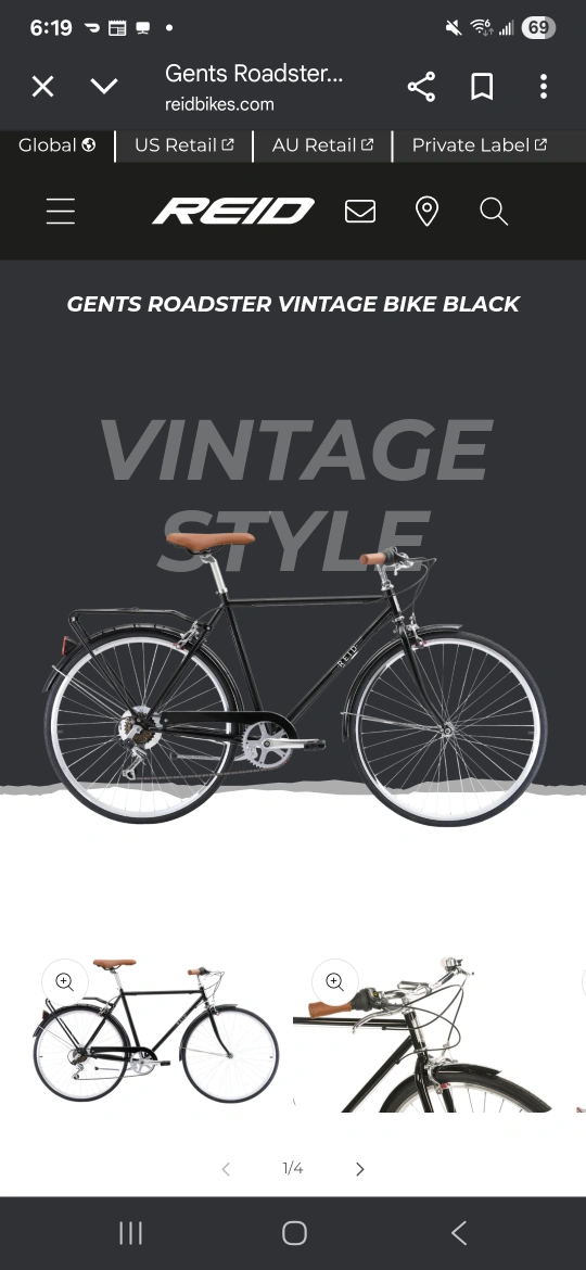 Rarely used for one summer. I have to sell to get a e bike because I have degenerative disc problems Selling a Reid Gents Roadster Vintage Bike in black! It features a Reid custom steel frame and fork, Reid alloy curved vintage style handlebars, and a Promax alloy quill stem with negative rise. The pedals are VP platform with rubber grip inserts and a 9/16" steel axle. It also has a Reid tan comfort saddle and seatpost. The bike has a Shimano 7-speed freewheel and Shimano Tourney rear derailleur. The brakes are Promax dual-pivot calipers, and it includes accessories like a chainguard, pannier rack, mudguards and kickstand