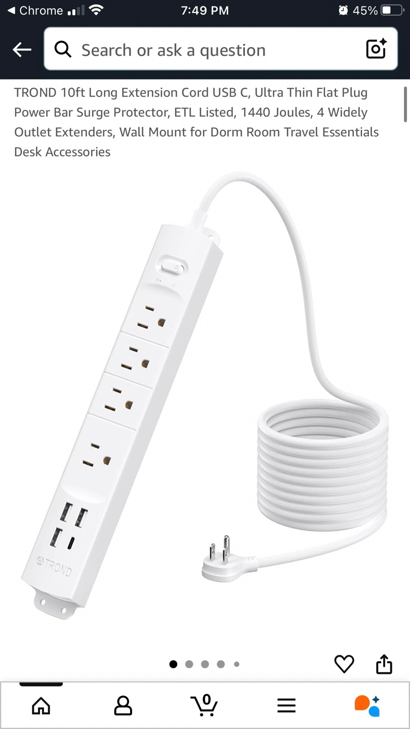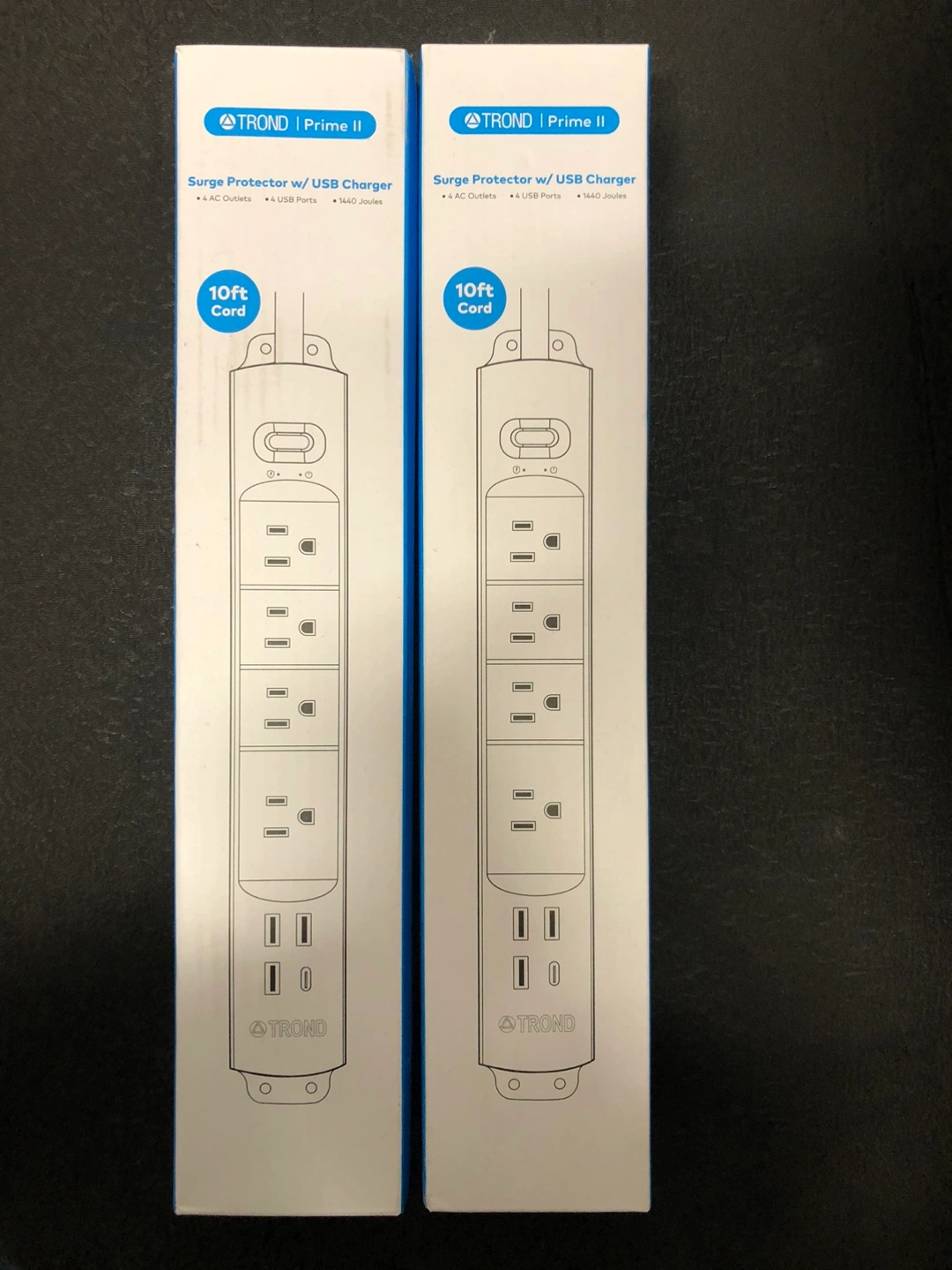 Selling a TROND Prime II surge protector with a USB charger. It has 4 AC outlets and 4 USB ports. The cord is 10ft long. It also provides 1440 Joules of surge protection. Perfect for home or office use! Selling 2 for the price of 1! Originally bought from Amazon Pickup only ‼️