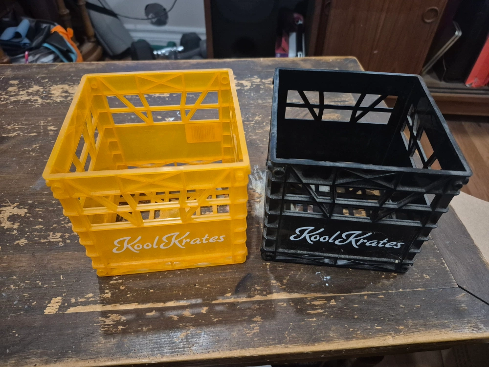 Selling two Kool Krates storage crates! One is orange and the other is black. Great for organizing your things!