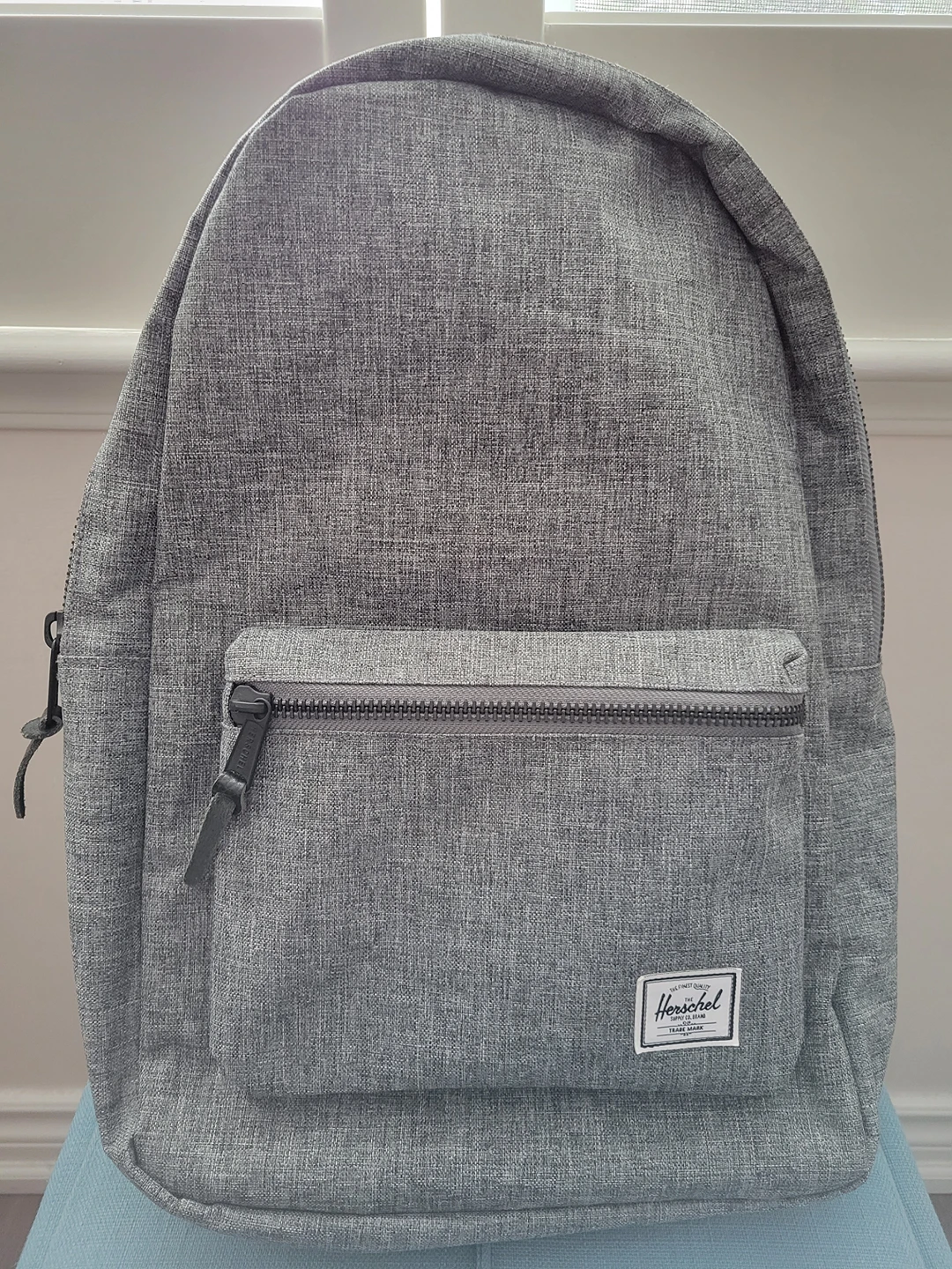 Only worn once. Small front pocket with zipper. Unobstructed main compartment interior with back pocket and small side pocket. Can fit 15" laptop. No side pockets. 16.5"(H) x 12"(W) x 5"(D) The original backpack. The Herschel Classic™ is a simple design for everyday. Pickup near Yonge/Finch area.