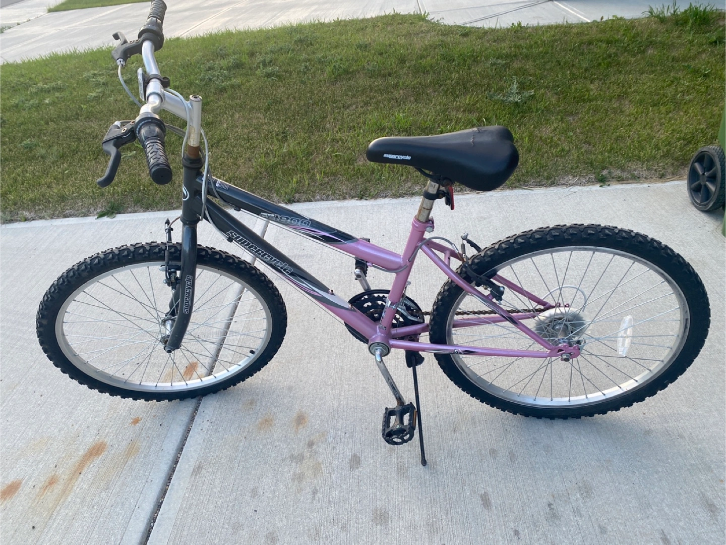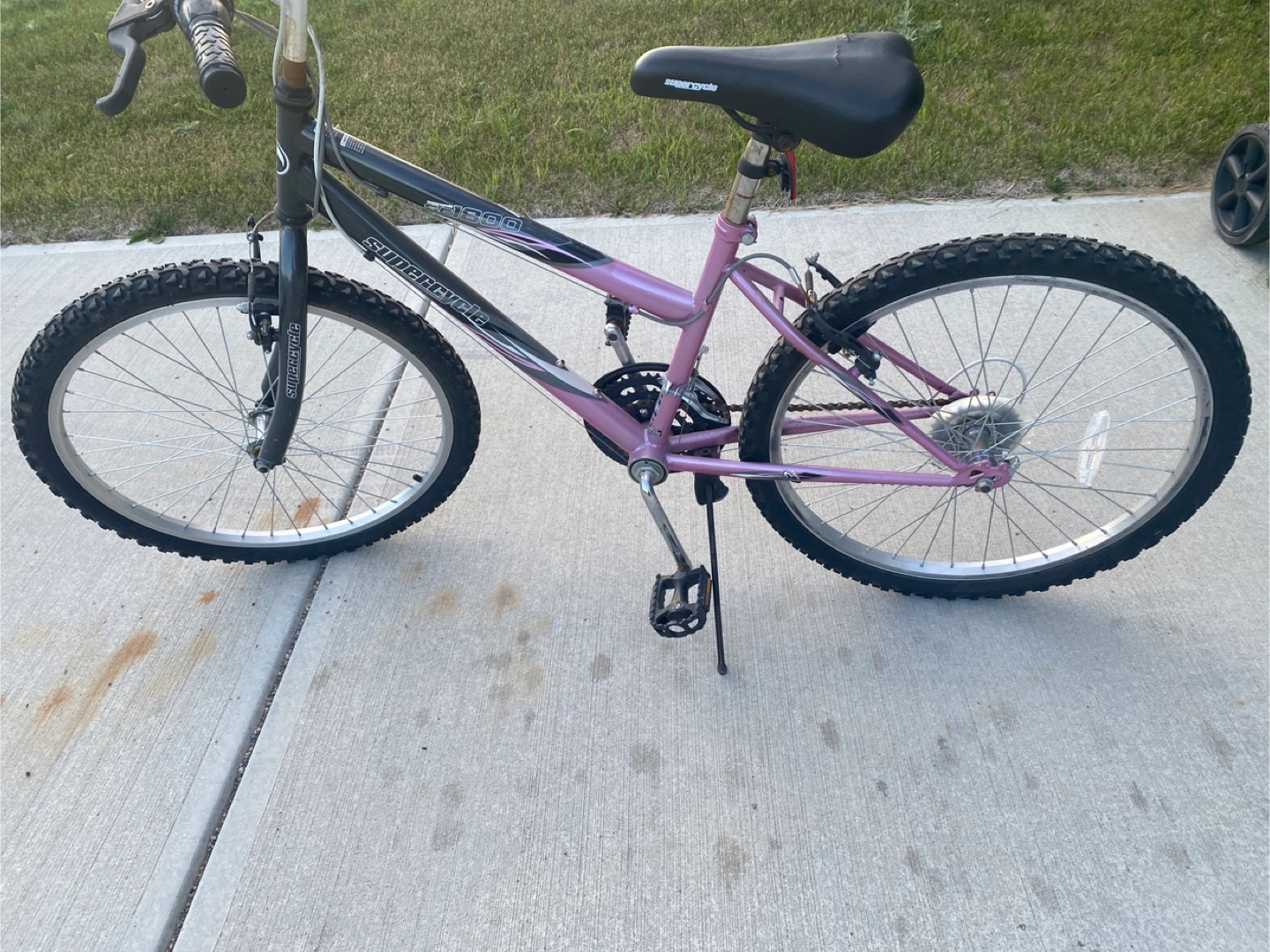 Selling a Supercycle 1800 bike in purple and black. It's in good used condition and ready for a new rider!