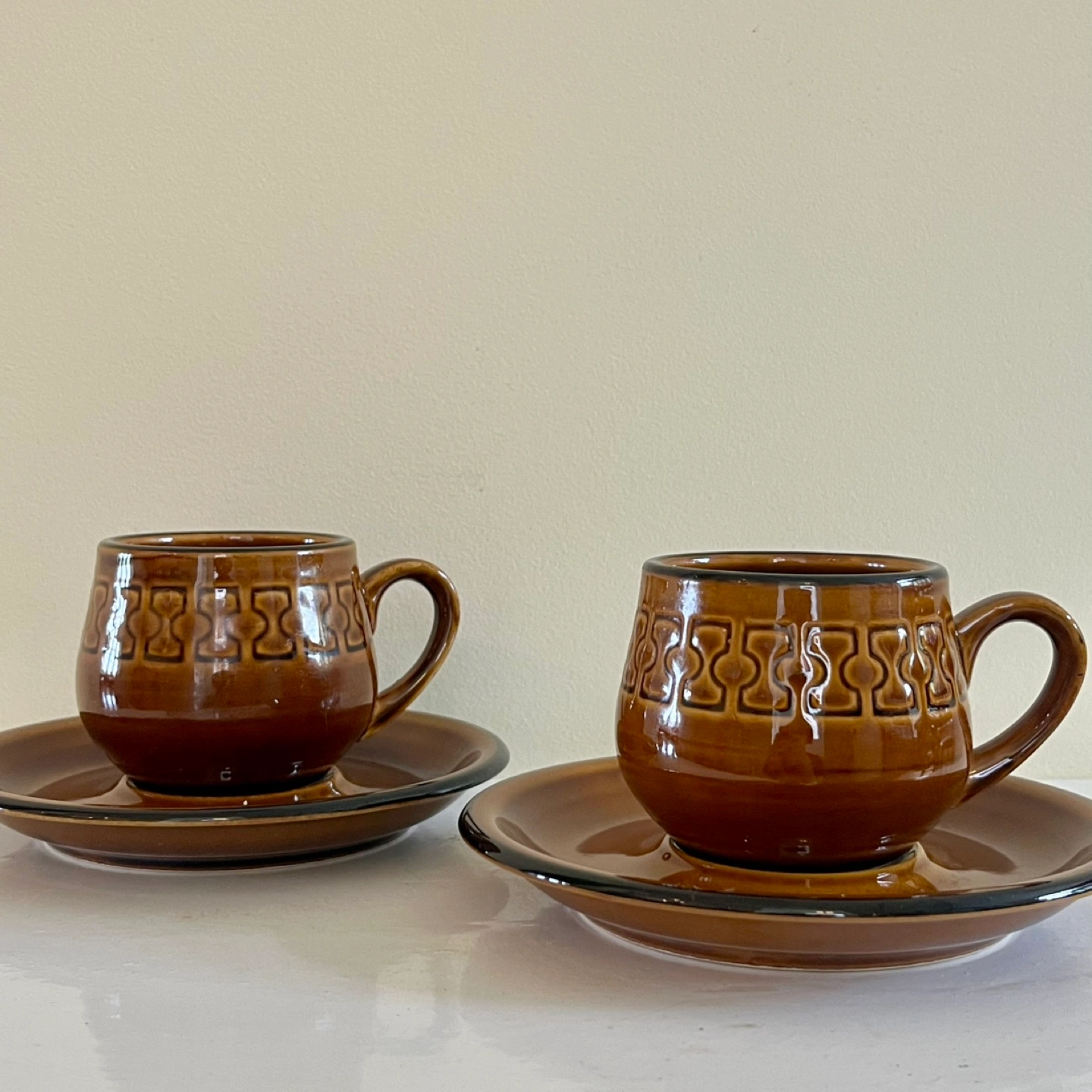 Pair of Cambrian Apollo Stone by Atelier Sone cups and saucers. All four pieces in wonderful vintage condition, with lustrous glaze. No chips or cracks. Made in Japan. Pick up Montgomery. Cross-posted. Please check out my other vintage listings.
