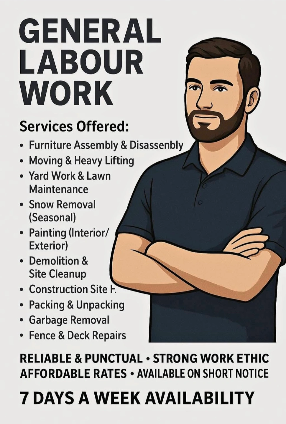 π οΈ ONE CALL, WE DO IT ALL! β Cleaning | β Moving | β Demolition | β Grass Cutting π Serving BRITISH COLUMBIA & Nearby Areas π Call/WhatsApp: 6727713300] π§ Services We Offer: π§Ό Deep Cleaning: Homes, offices, post-renovation cleanups π Moving Help: Packing, loading, and unloading ποΈ Demolition: Small structure tear-downs, junk removal πΏ Lawn Care: Grass cutting, trimming, yard cleanup π₯ Why Choose Us? βοΈ Reliable & Professional Team βοΈ Affordable Prices βοΈ Fast Response βοΈ 100% Satisfaction Guaranteed π Book Now & Get a Special Discount for First-Time Customers! π² DM us now on Facebook or call/text: [6727713300] πΌ Let us take care of the work β so you donβt have to!