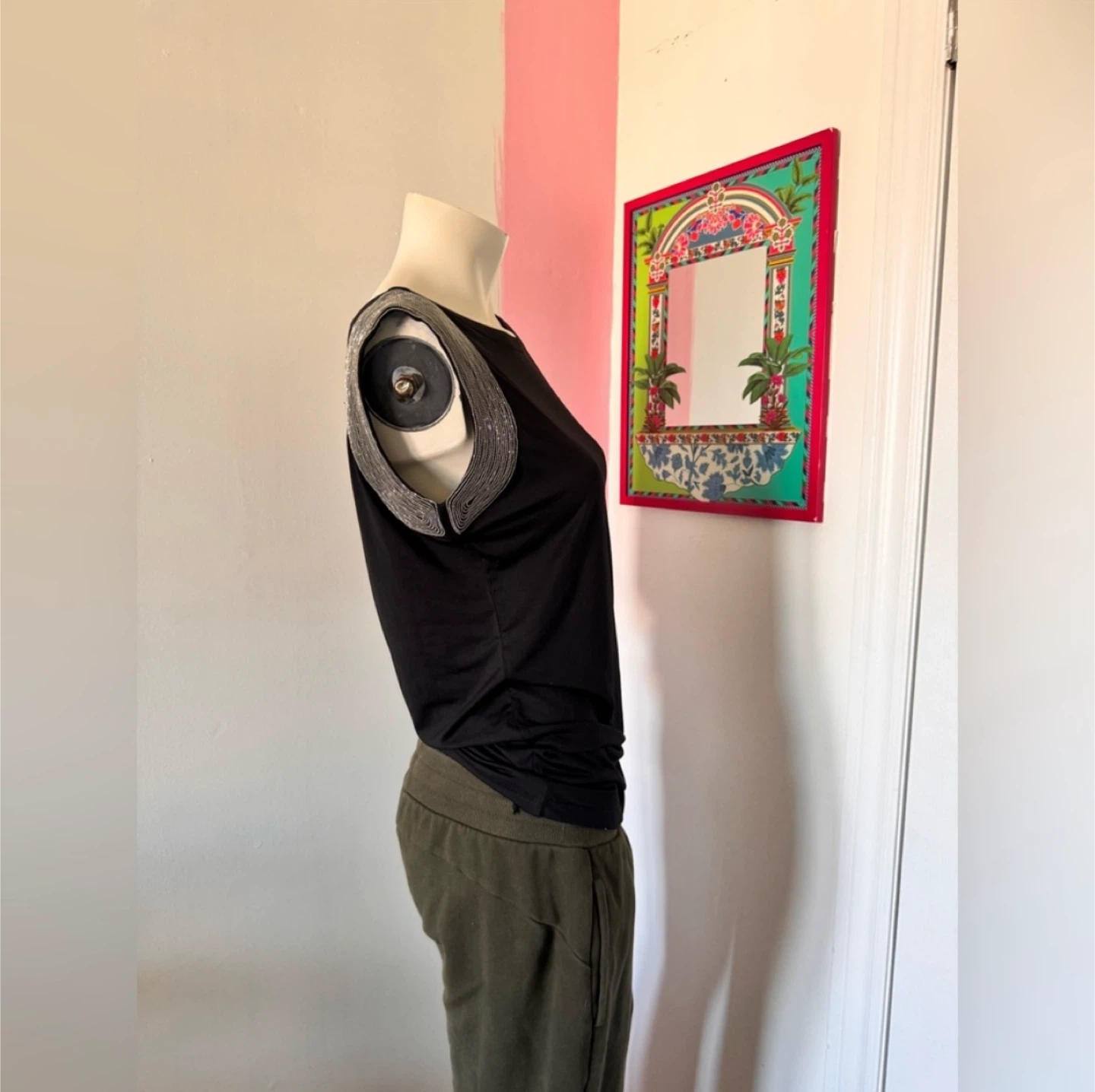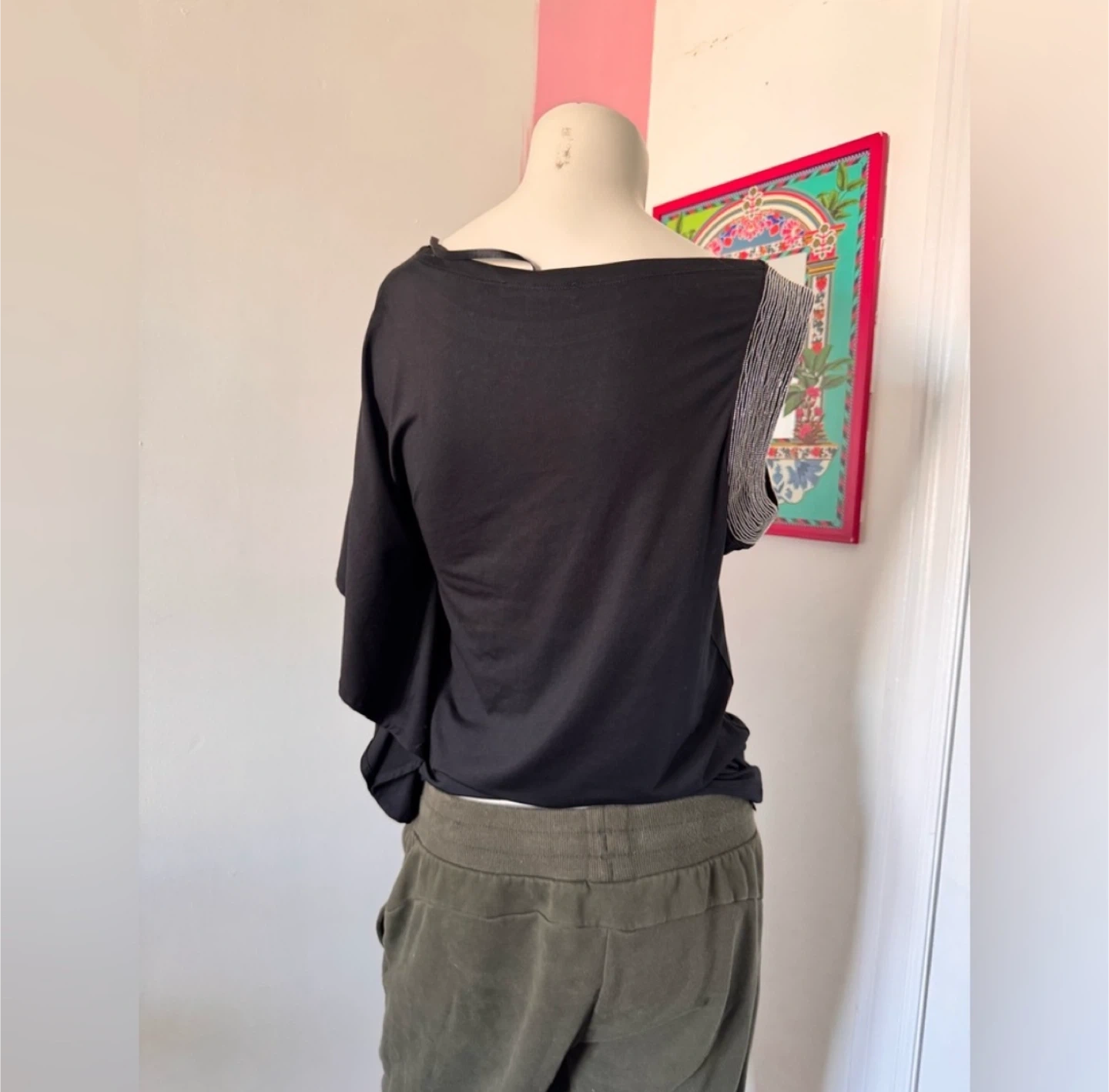 Brand: filtre Size: S Measurements: Length: 25” Pit-to-Pit: 18” Shoulder Width: 11” Sleeve Length: 2” and 12” Hem Length: 18” Sleeve Cuff Lengths: 9” and 12” Neckline Depth: 2” Silver Detail Width: 2” Material: Polyester, Spandex Condition: EUC