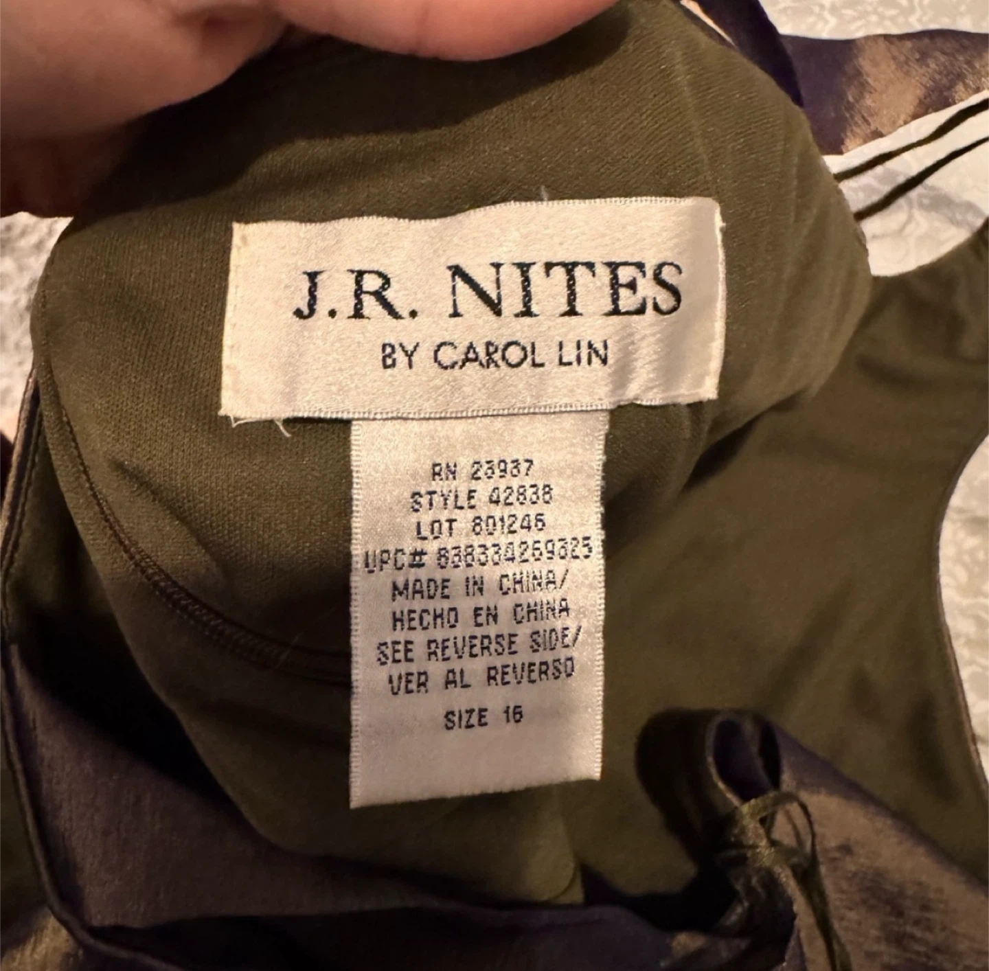 Brand: J.R NITES by Carol Lin Size: 16 Length: 20” including straps Pit-to-Pit: 20” Shoulder Width: 14” Hem Length: 19” Arm Hole Length: 10” Back Zipper: 10” Material: Polyester, Nylon, Spandex Condition: EUC