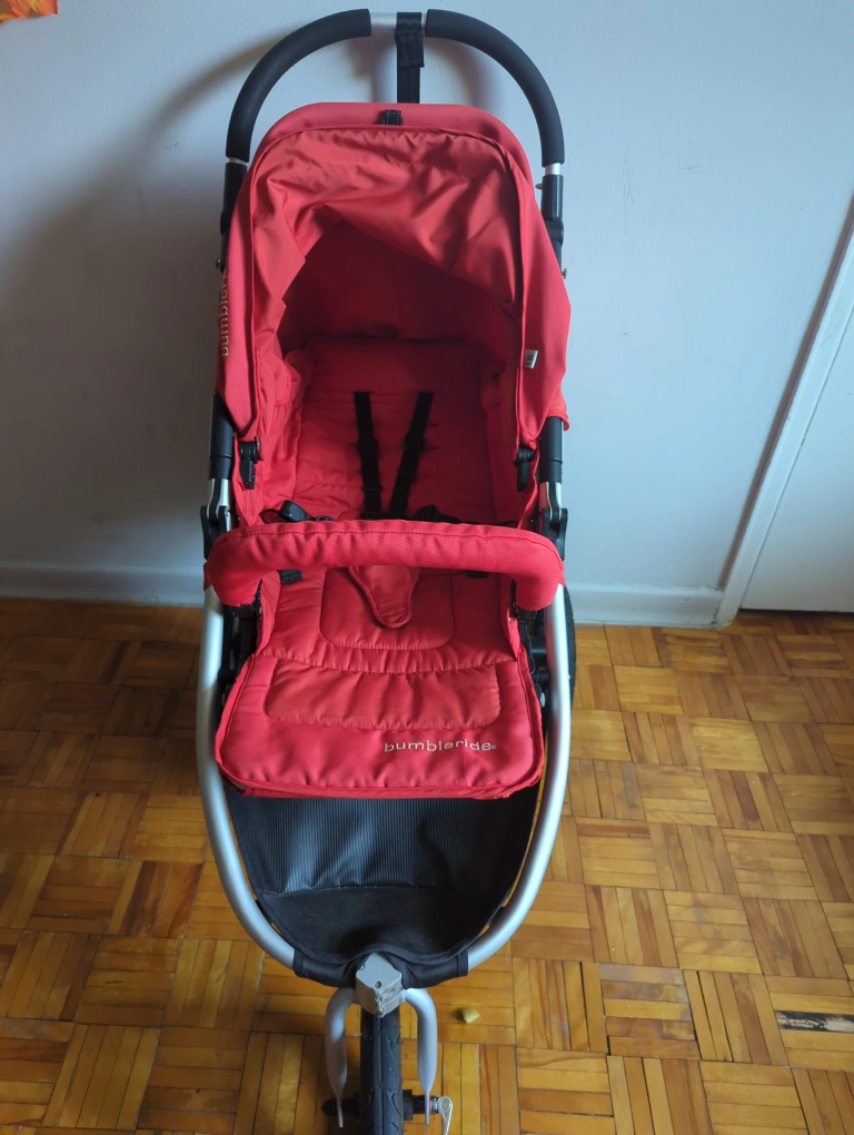 💧WASHED 💧 and Sanitized red Bumbleride stroller. It's in excellent condition and ready for a new home. Perfect for taking your little one out and about! 💧baby's can sit or sleep completely flat adjustable seat!💧 * easy foldable & portable * detachable/ removable HANDLE BAR * large canopy for full shade & half or full detachable * Detachable Seat cover for easy wash *Adjustable seat for comfortable sleeping *Easy washable seat cover & canopy infact all clothed parts removable & washable !! 💧I washed well with hot water and sanitized for sensitive skins 💧!! !! large storage!! rarely used great in condition because of the Wash seat cover looks little wrinkle