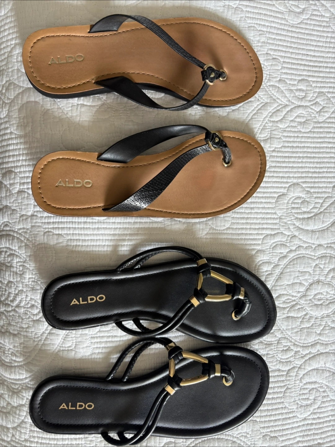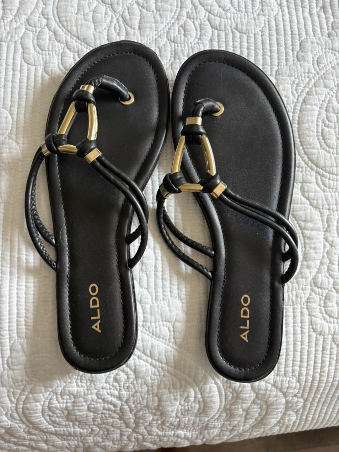 Cute ALDO flip flops in a black and tan colour. They are in perfect condition and great for summer! Both Sizes 8. Almost brand new, only warn a couple of times (2 Pairs for $6) Pick up only/Porch pickup Dufferin and Overbrook