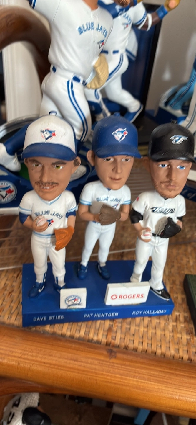 Selling a set of Toronto Blue Jays bobbleheads featuring Dave Stieb, Pat Hentgen, and Roy Halladay. A great collectible for any Blue Jays fan!