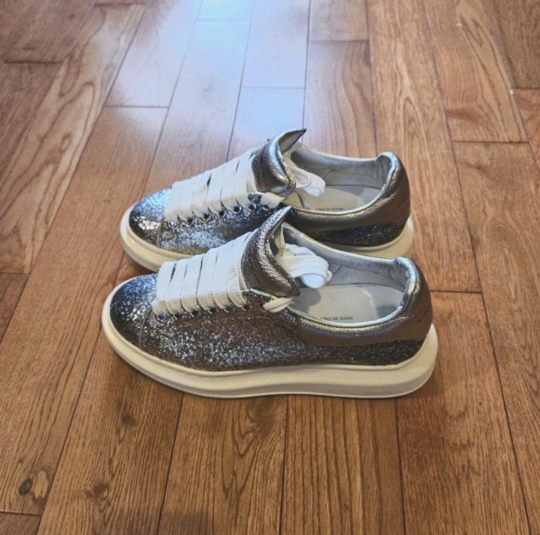 Alexander McQueen Leather Sneakers in 6.5 Blue Silver Gradient Glitter Embellishment Women's Size: US 6.5 EU 36.5 Very good condition Just got back from the cleaner