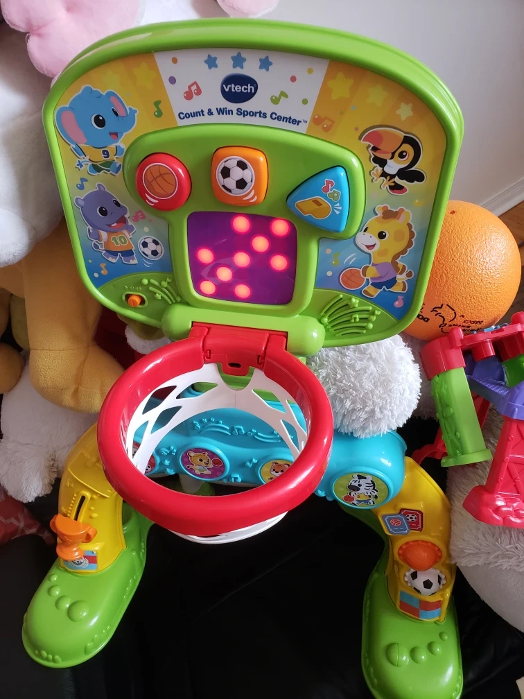Selling a VTech Count & Win Sports Center! It's in great shape and ready for a new home. This interactive toy is perfect for little ones who love sports and learning. It combines basketball and soccer themes with lights and sounds to keep kids engaged and entertained. From pet free smoke free home. Disinfected and ready for pickup.