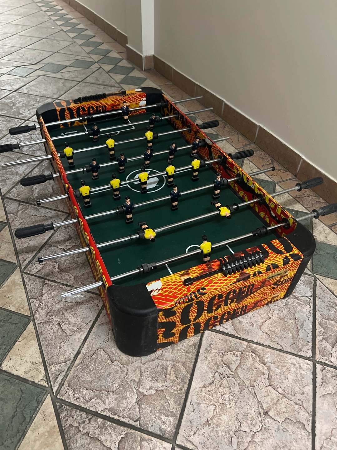 FULL SIZE. NO LEGS. NO LEGS. HENCE THE CHEAP PRICE. $ 40 Come and get it. Selling a Sportcraft foosball table in good condition. ! The table features a vibrant design and sturdy construction. It's ready for a new home and lots of fun games