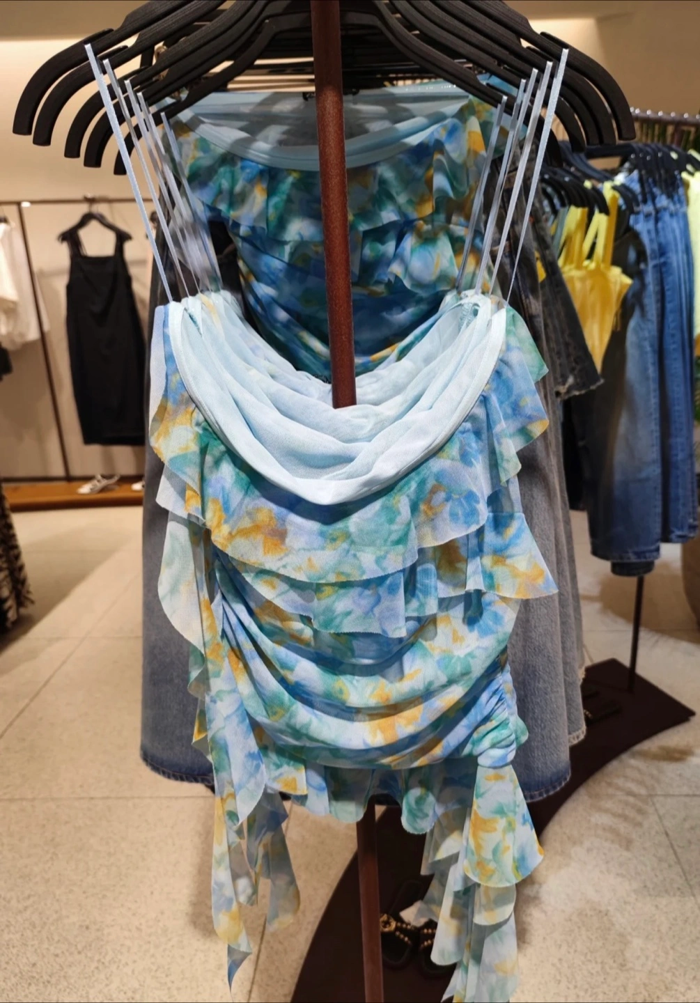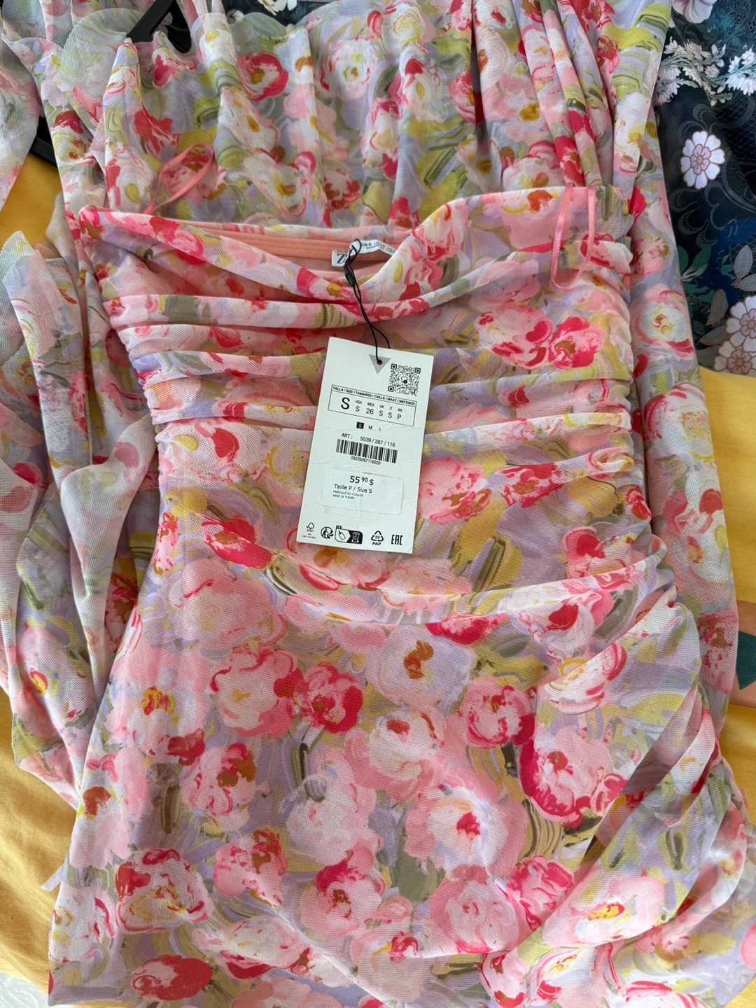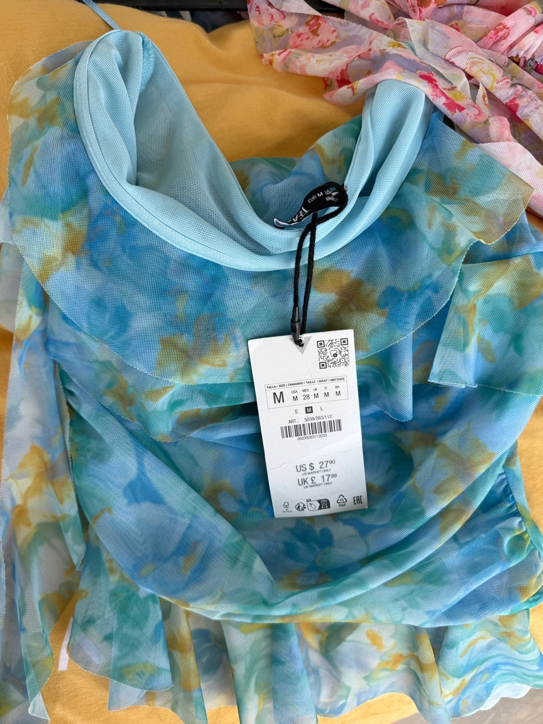 Selling a super cute Zara dress with a floral print and ruched detailing! It's a size small. Perfect for spring or summer! Also a cute ocean blue top! Size M! Both are stretchy DT queen st pickup only