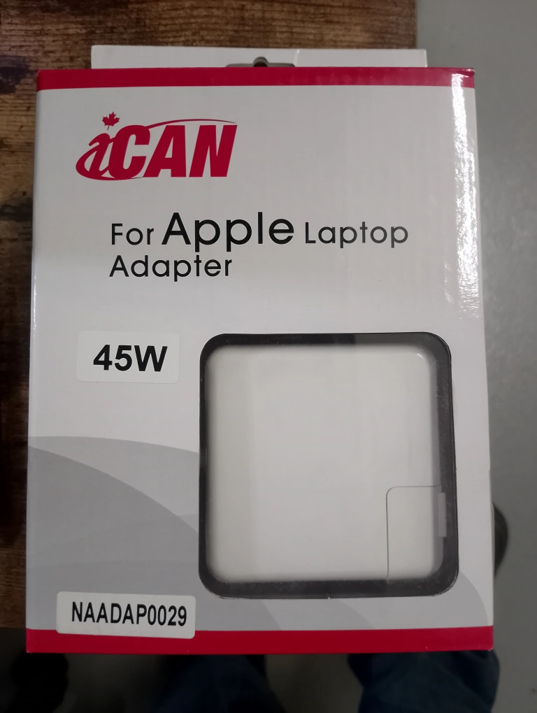 Selling a brand new iCAN 45W adapter for Apple laptops! It's still in its original packaging. This adapter is designed for indoor use only, so keep that in mind. Also, please don't disassemble it!