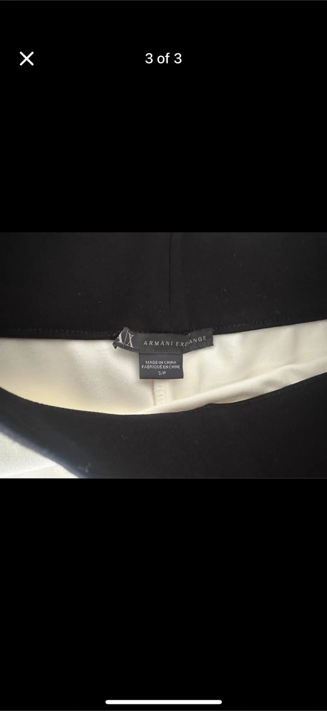Here's a stylish Armani Exchange skirt in a classic black and white colour block design. It's a size S and in great condition! Perfect for dressing up or down, this skirt is a versatile addition to any wardrobe. Cash only and no try ons; thanks.