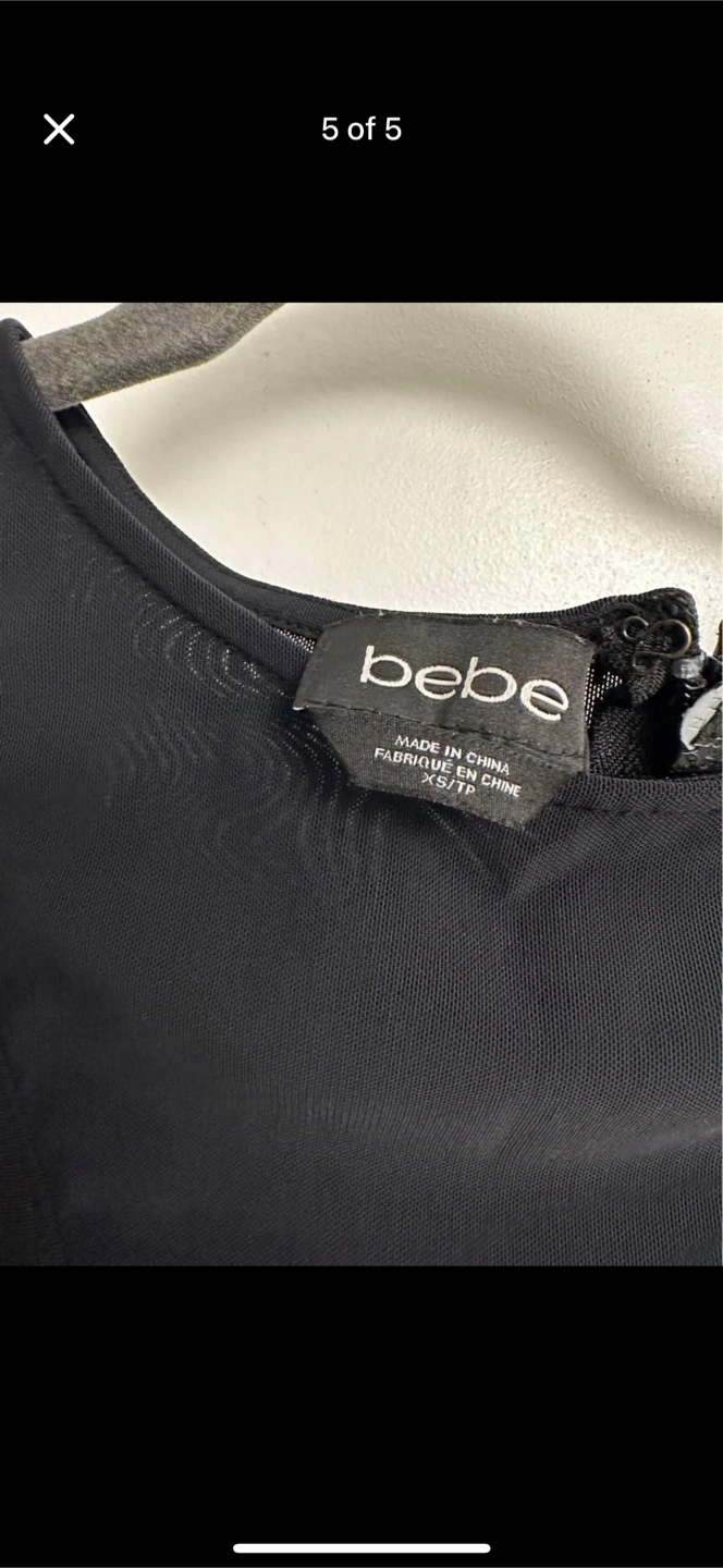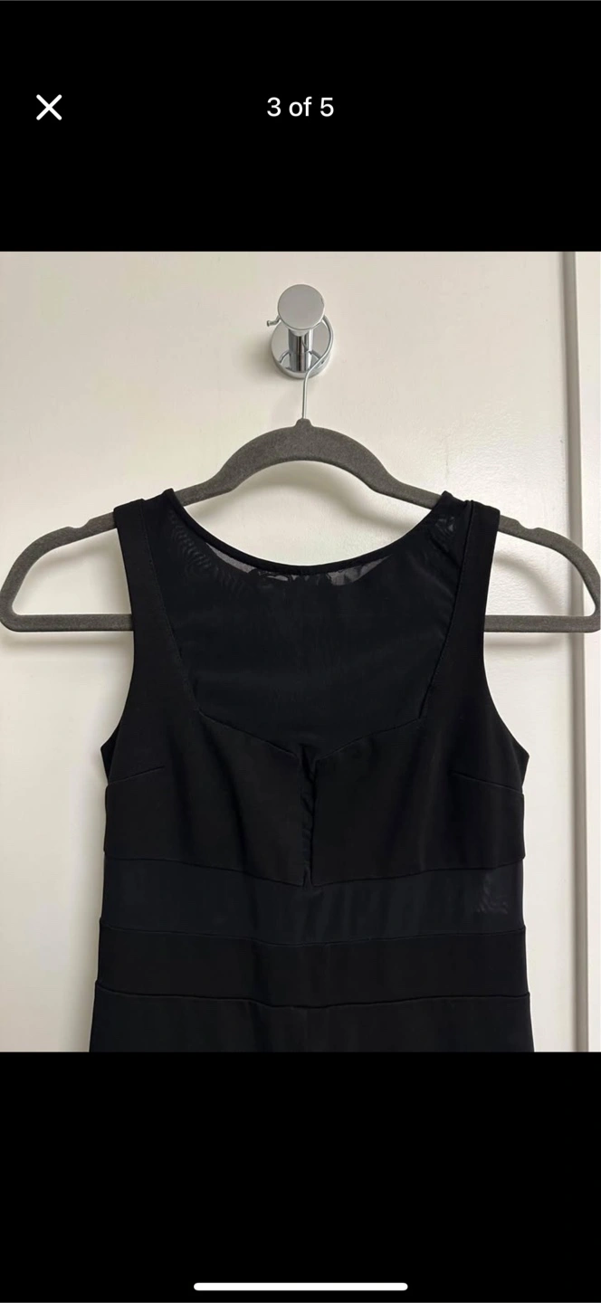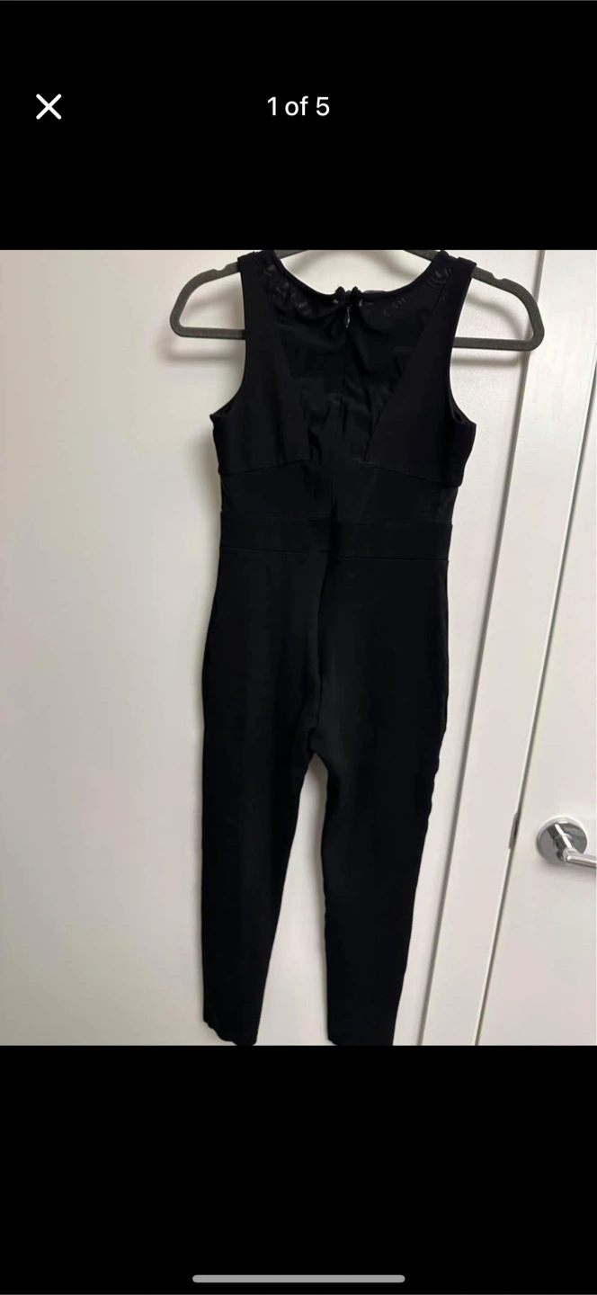 Selling a cute black jumpsuit from Bebe with mesh detail (front and back)! It's a size XS. Perfect for a night out or a special occasion. Cash only and no try ons; thanks!