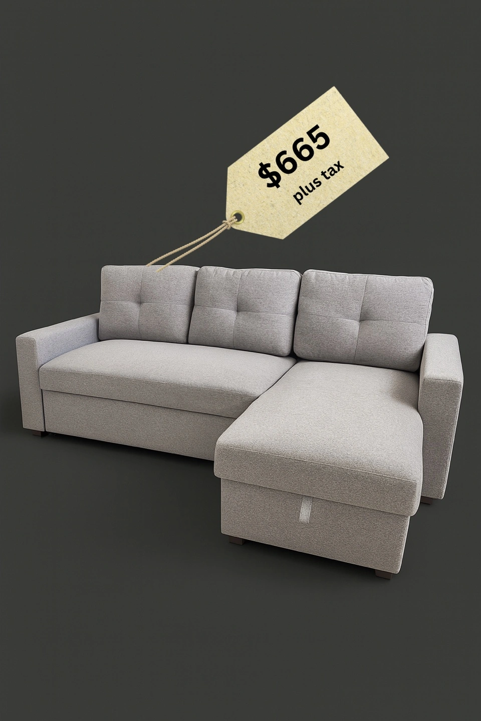 Brand New in Box Price: $665 plus tax Delivery: $25 Assembly: $65 Payment: Cash/Etransfer/Debit-Tap Dimensions: Sofa bed Sectional 88”L 59”W 38”H Modern Reversible Chaise (Either left or right) Grey Fabric Sectional Sofa Bed with Storage Post Modern Furniture Shoppmf.ca Upgrade your living space with this versatile and functional sectional sofa bed. Upholstered in a soft grey fabric, it features a reversible chaise that can be positioned on either the left or right side to suit your room layout. Perfect for small spaces or guest areas, this sofa effortlessly transforms into a comfortable bed for overnight use. A large lift-up storage compartment under the chaise provides convenient space to store blankets, pillows, or other essentials, helping you keep your room clutter-free. Stylish, compact, and practical—this sectional is designed for modern living.