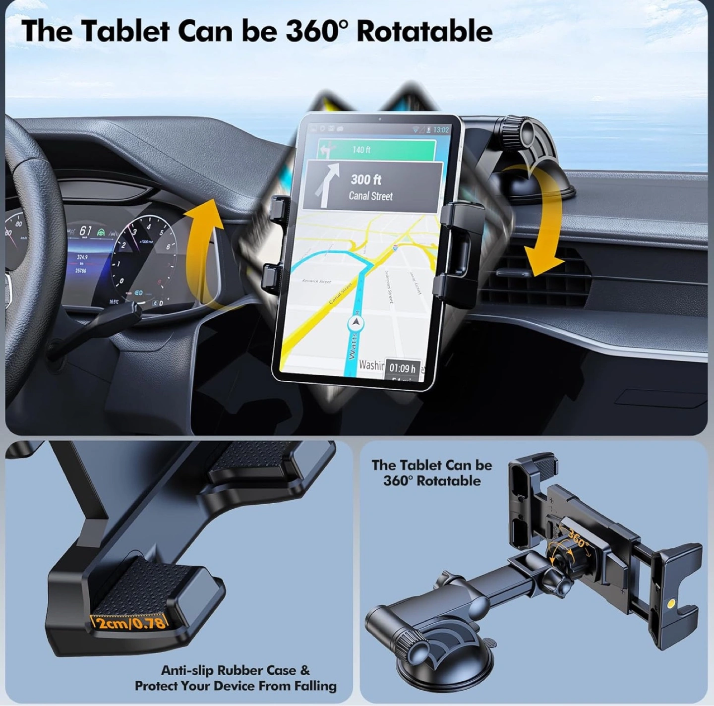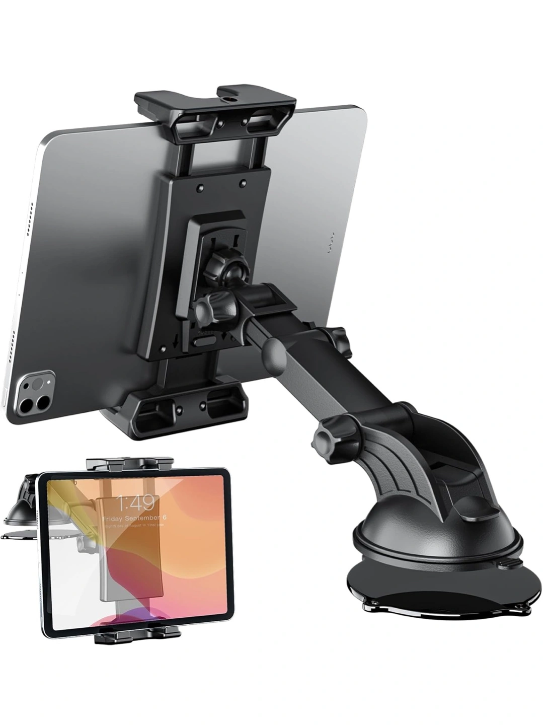 This universal tablet car mount holder is perfect for keeping your tablet secure and accessible while on the road! It features a super strong suction power and can be easily installed with a simple open, press, and lock mechanism. The holder is compatible with tablets ranging from 5 to 13 inches and can be rotated 360° for optimal viewing angles. The adjustable and durable telescopic arm allows for comfortable positioning, and the anti-slip rubber case protects your device from falling. It can hold up to 3KG. Only available for pick up.