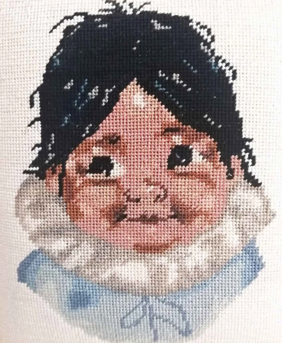 Beautiful Inuit children portraits. Petit point needlepoint. Very fine craftsmanship. Framed with a cushioned back. Original frames. Measures 7 inches x 8 inches in diameter. Good vintage condition, consistent with age. π Pick up Townline hwy2 area Cash is preferred please π