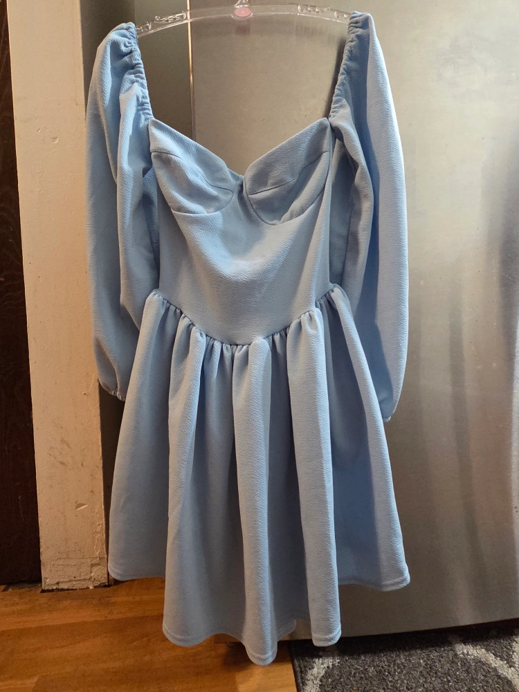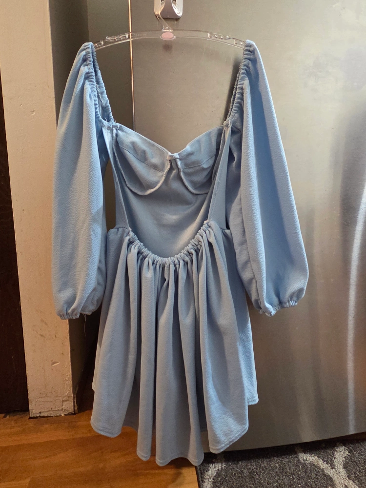 ❗SERIOUS BUYERS ONLY Please read the description before messaging. FCFS only. Open to reasonable offers, Lowball offers would be declined. cute light blue mini dress with puff sleeves, sleeves can style as off shoulder. Can add ribbon lace or any lace on the back as your own customization. It's perfect to wear for any occasion(s) No stains, tears or any flaws. Size: S-M Originally bought from the Philippines. Gently used *only wore twice* Pick up at Southwood, SW. Preferred Meet up: Chinook or Southcentre Mall. Can arrange meet up within in Dowtown area, No outside of city meet up. E-transfer or Cash for payment. if the ad is up, it is available!.