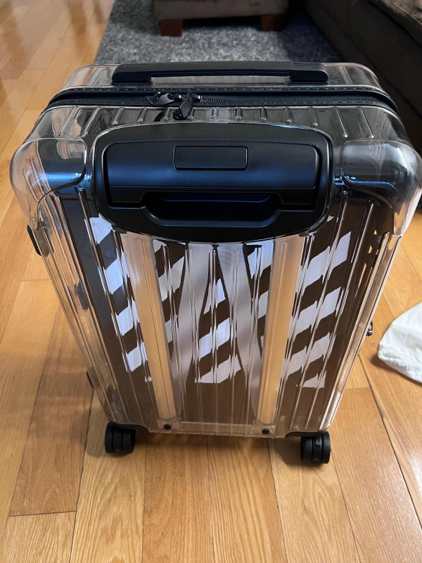 Elevate your travel experience with the OFF-WHITE x RIMOWA transparent carry on 36L case. Limited edition collaboration that blends style and functionality. Crafted by the well renowned RIMOWA brand, this carry on is designed to meet the needs of the modern traveler. It's striking white colour and transparent accents make it a standout piece, while the ample 36L storage ensures you can pack everything needed for your journey. The RIMOWA construction and design make it durable for rigors of travel and maintaining a sleek contemporary aesthetic. DIMENSIONS: 21.7" Height x 15.4" Width 9.1" Depth CONDITION: Never Used BOUGHT: Online at SSense