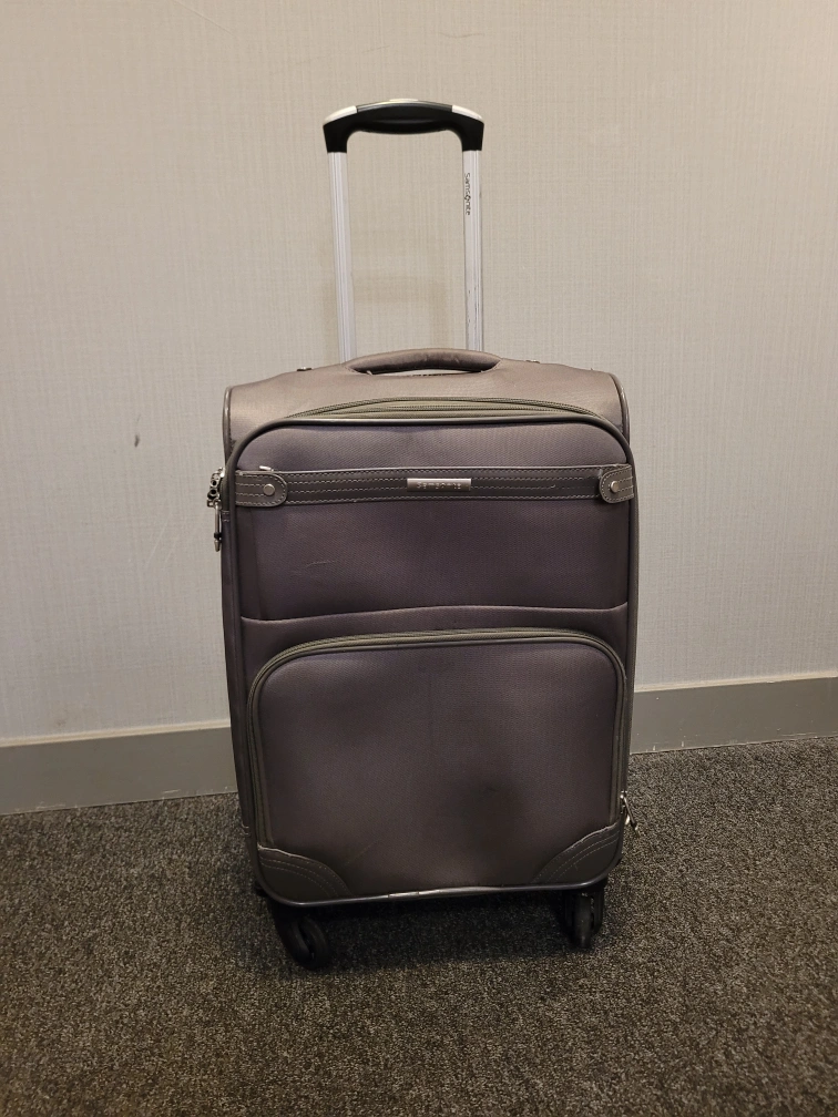 Selling a gently used Samsonite rolling suitcase. It's in great shape and perfect for carry-on. The colour is a stylish grey. It has a retractable handle and smooth-rolling, 4 all directions 360 wheels for easy transport. Inside, there are straps to keep your belongings secure, suitcase is equipped with an expander to ensure capacity for your belongings overall dimensions: 21.5 in. x 14.5 in. x 9.0 in **** Cash Only **** **** Pickup Only **** **** No E-transfers **** **** Serious Inquiries Only/ Serious Offers Only ****