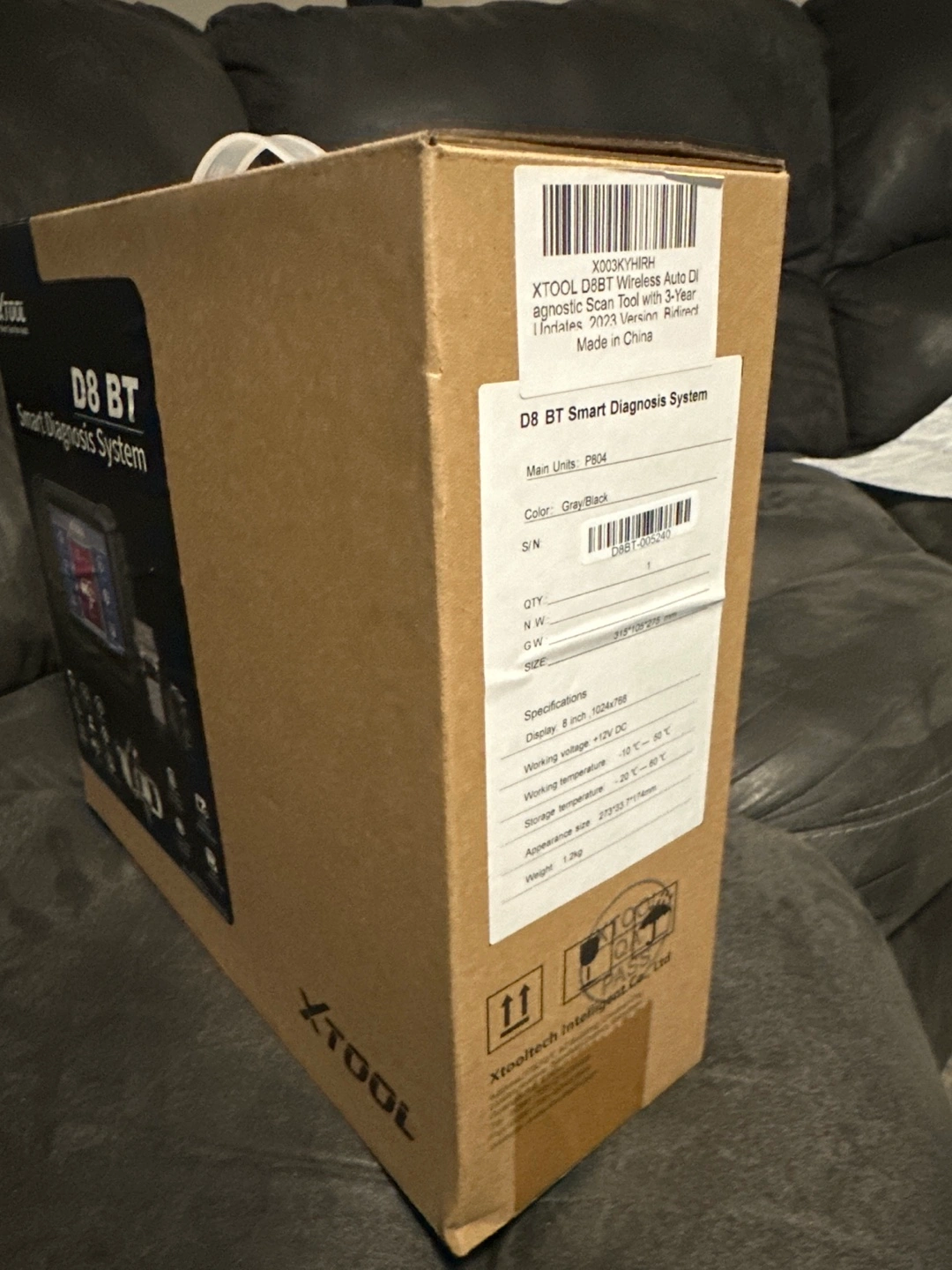 Selling a brand new XTOOL D8 BT Wireless Auto Diagnostic Scan Tool! It comes with a 3-year free update. The main unit is a P804, and it's gray/black in color. The display is 8 inch 1024x768, and it operates at 12V DC. It can work in temperatures from -10°C to 50°C. The appearance size is 273*165*77mm, and it weighs 1.2kg. The box is included!