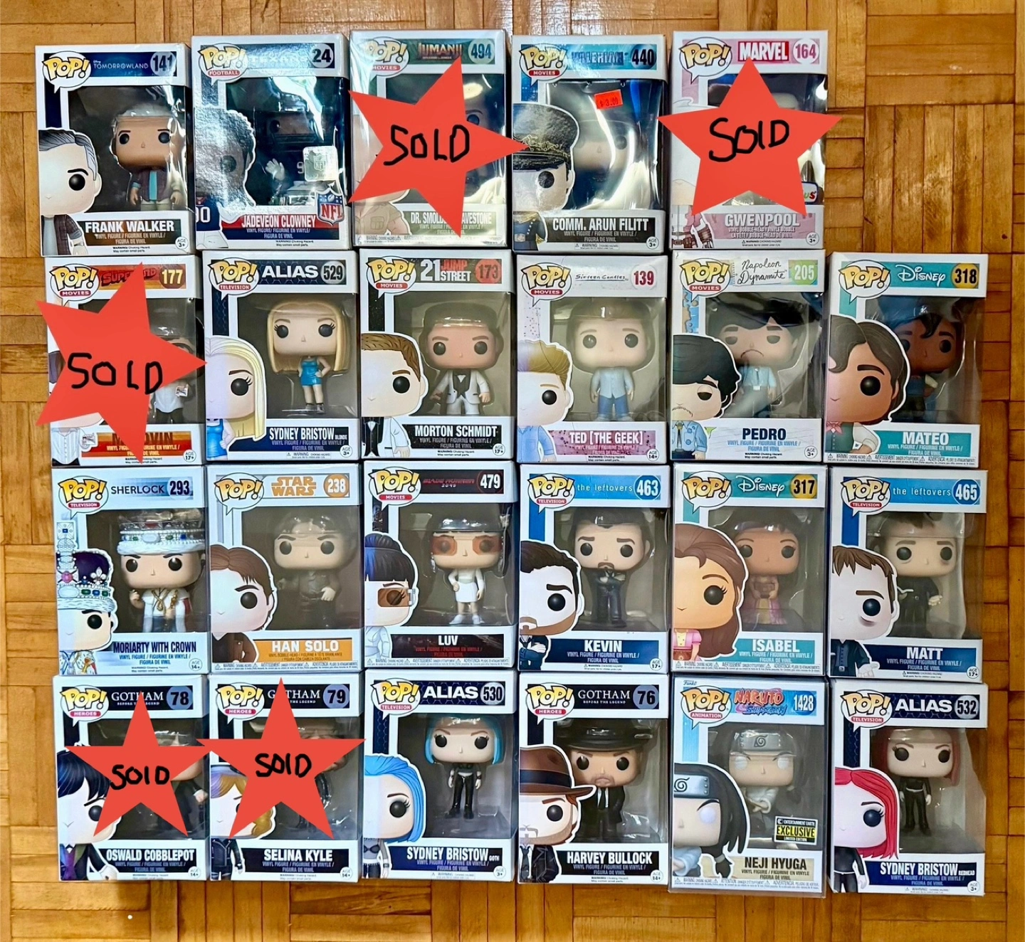 Selling some Funko Pop! vinyl figures, all in their original boxes! These figures are wonderful for displaying in a collector's case or on a shelf Harvey Bullock $60 Neji Hyuga $20 The rest are all $10 Will add a funko pop protector for $1 if interested.