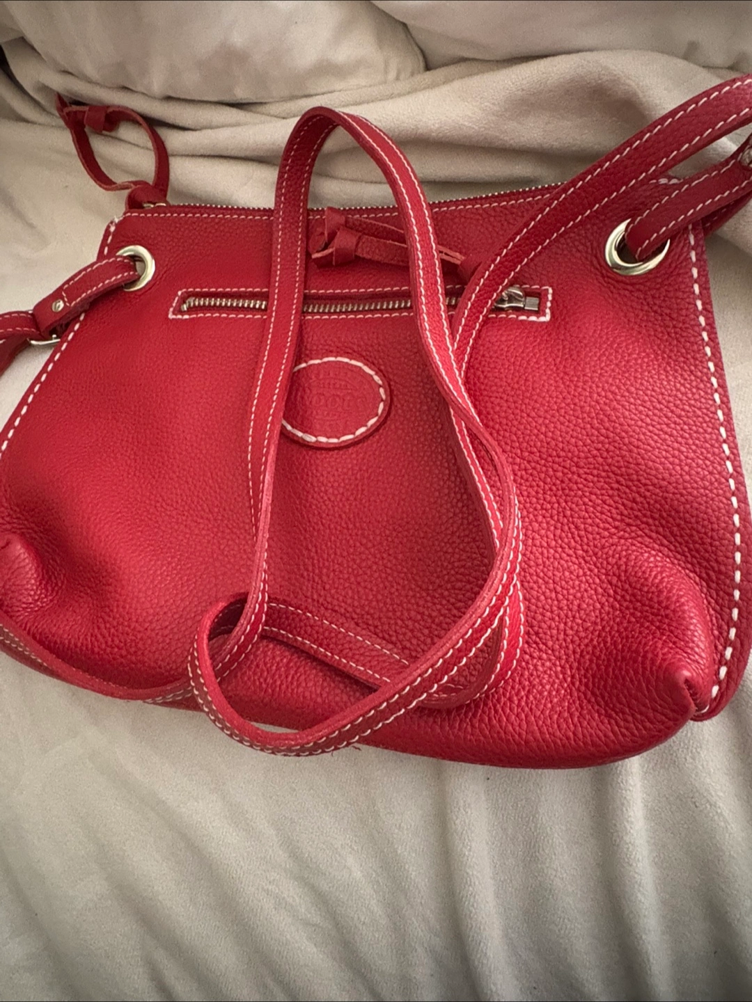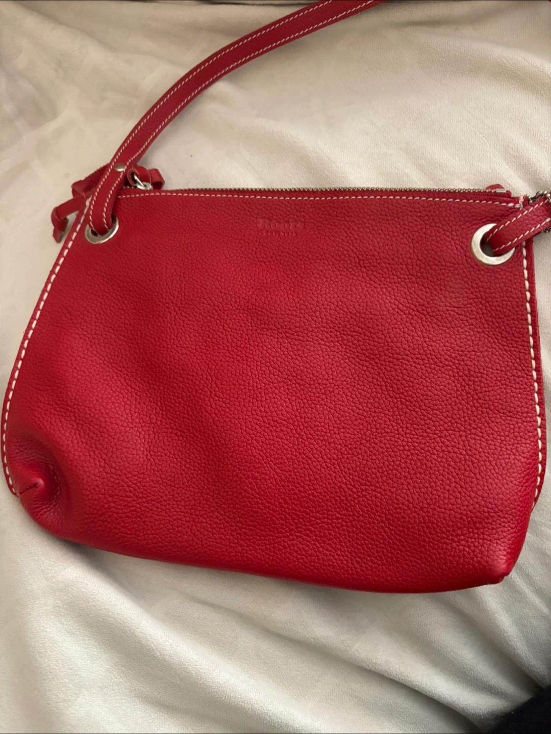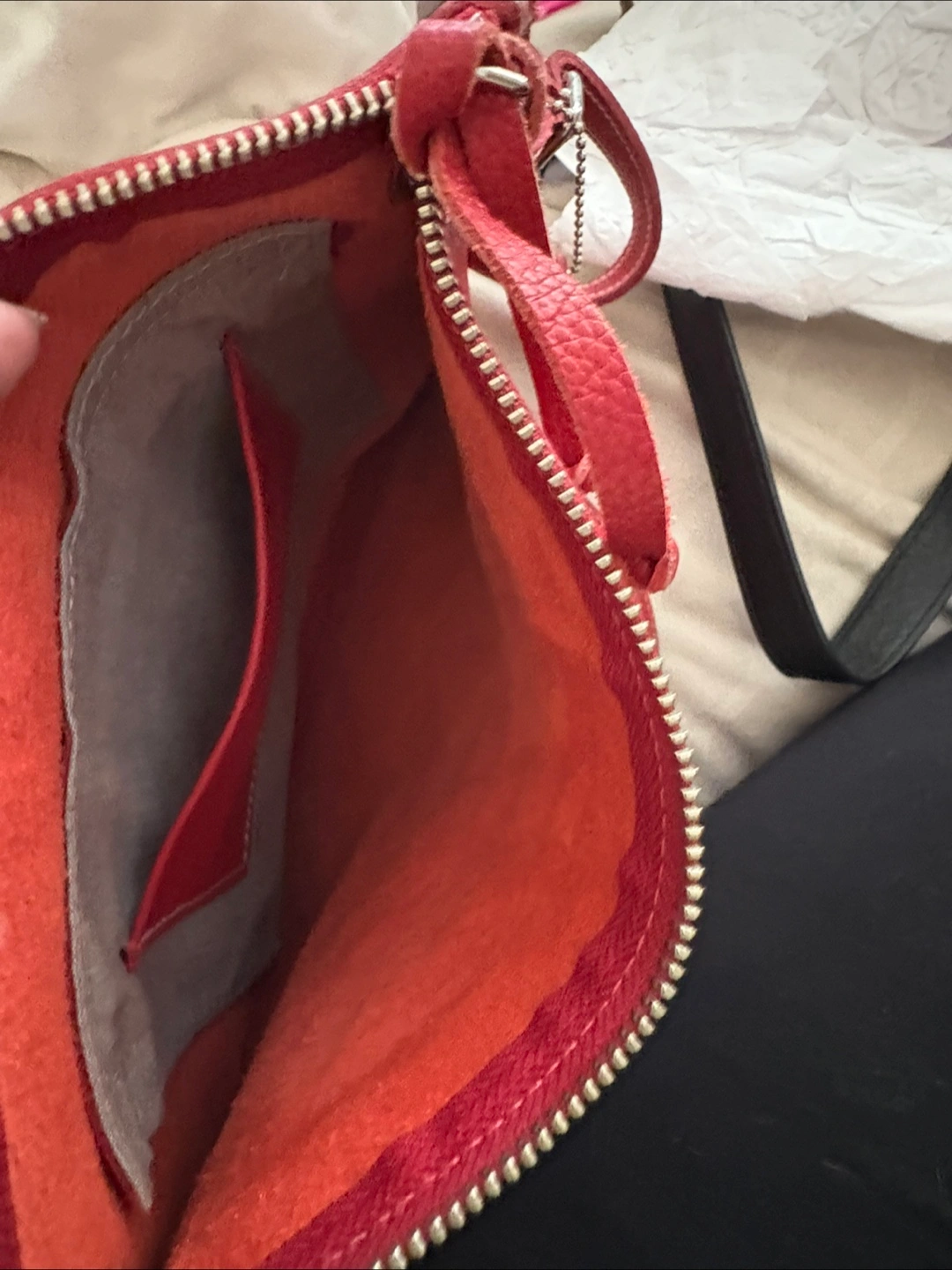 Selling a cute red leather crossbody bag from Roots! It's in great condition and perfect for everyday use. The bag features a zipper closure and a stylish design. Inside has a card pocket. Gently used a couple times and is in like new condition. Pick up Yonge/Eglinton