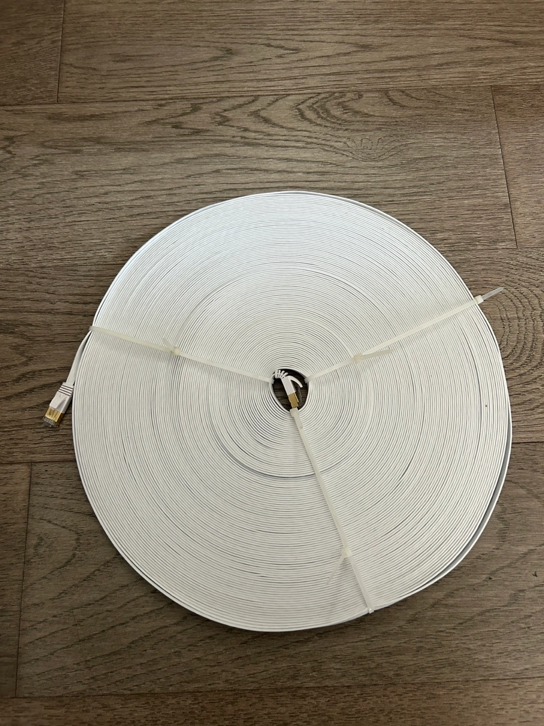Selling a roll of 100ft long white flat Ethernet cable. It's in great shape and ready to be used for your networking needs.