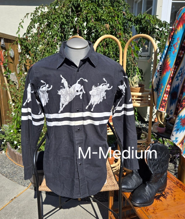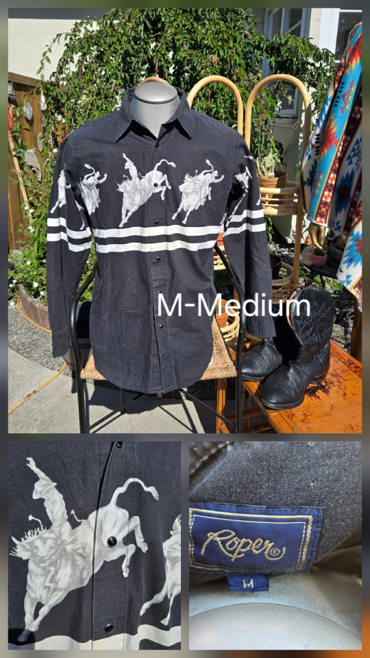 SUNFEST TIME! This Vintage Roper western shirt is in great condition! It's a size medium and features a cool cowboy riding a bull design.