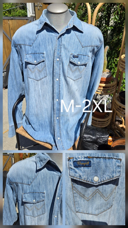 SUNFEST TIME! I'm selling a Wrangler denim western shirt. It's in great condition and ready for a new home! The size is a Men’s 2XL. It's a classic denim piece that would look great for everyday wear.