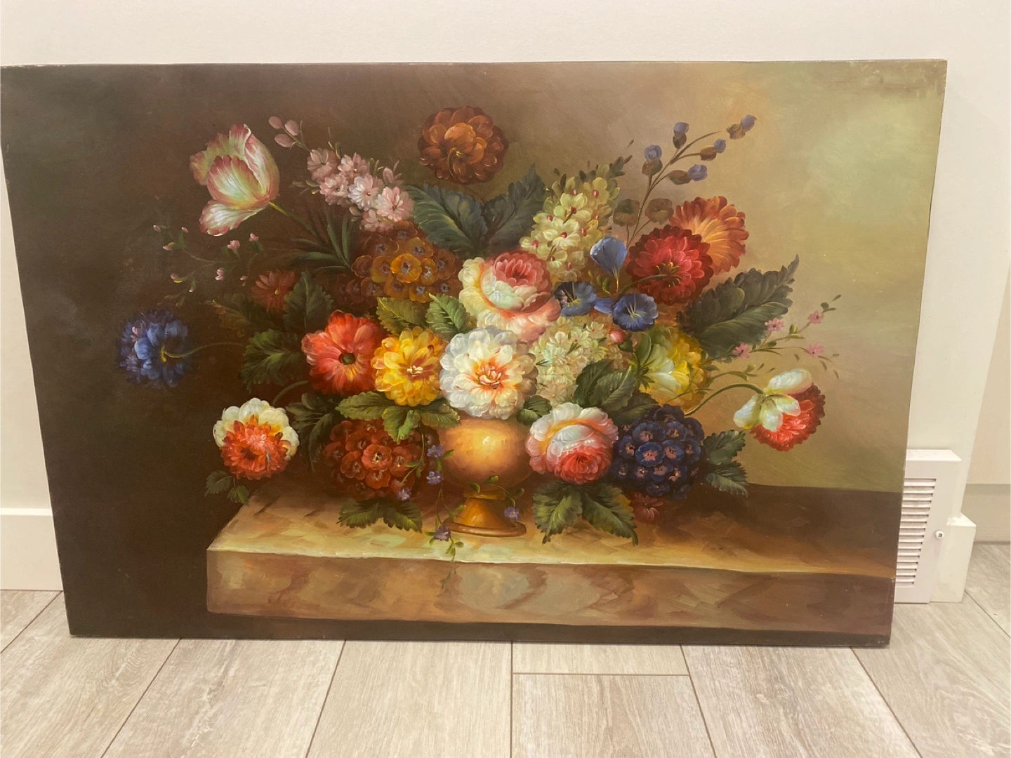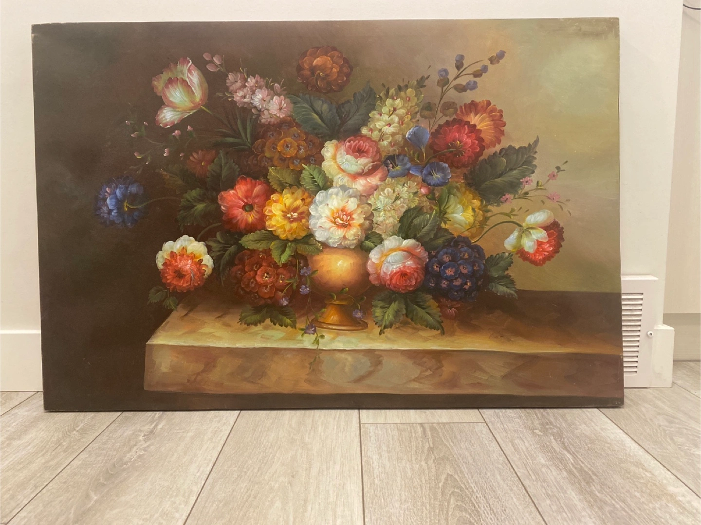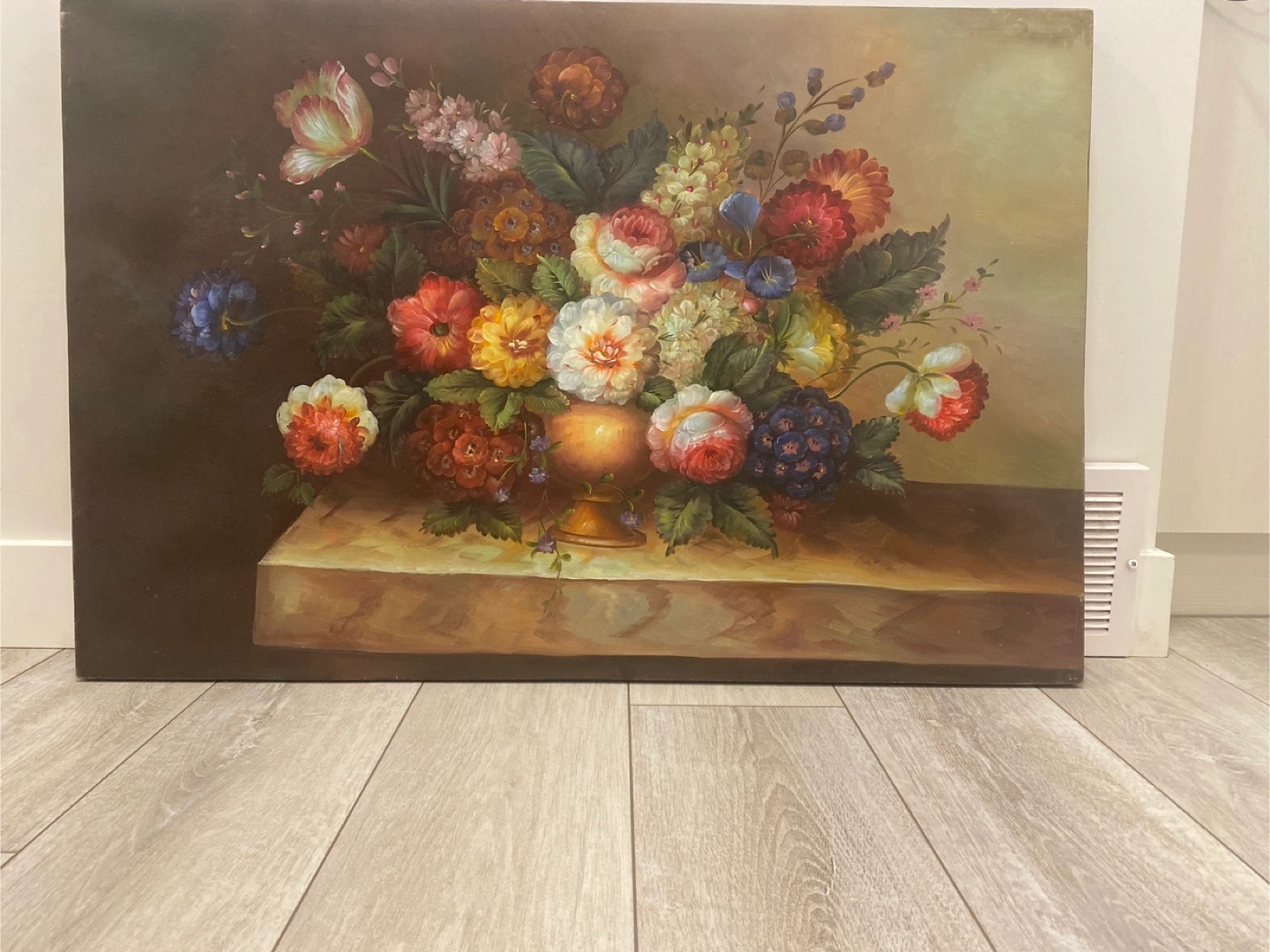 A beautiful floral painting, perfect for adding a touch of elegance to any room. The colours are vibrant and the details are lovely!