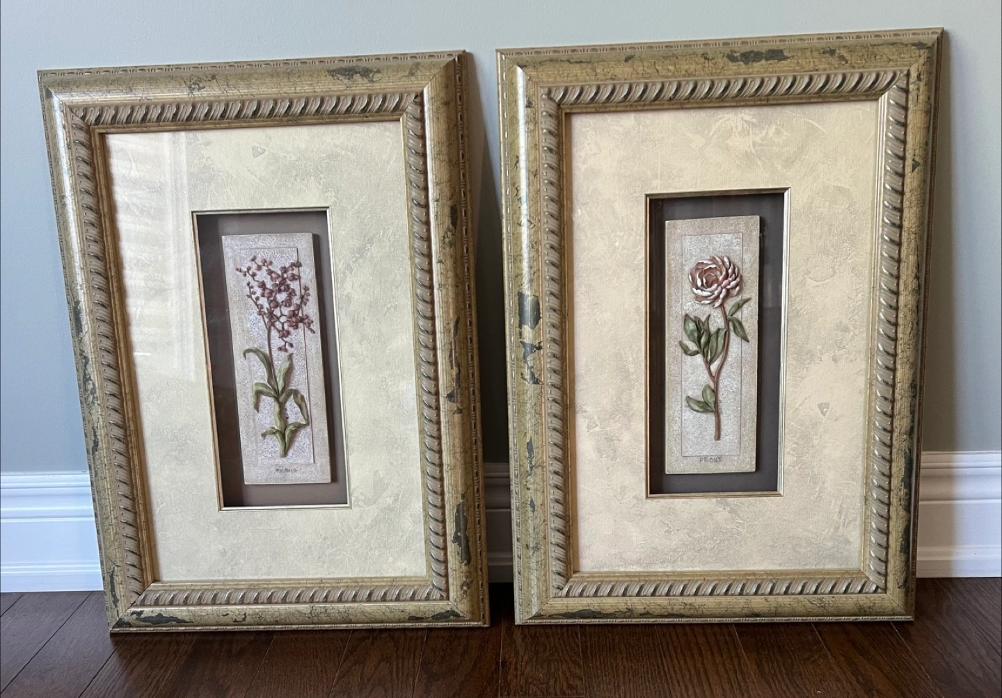 Selling two framed floral art pieces. 15” x 21” One is a peony and the other is an orchid. They're in great condition and would look lovely in any room $50.00 for both or BO