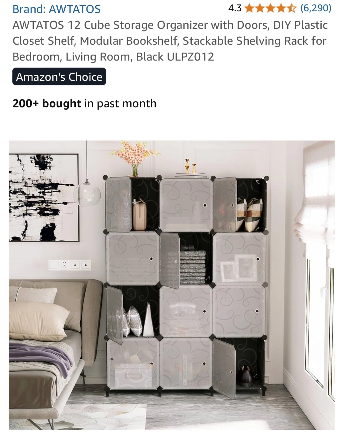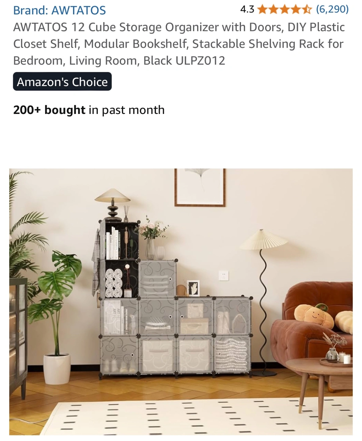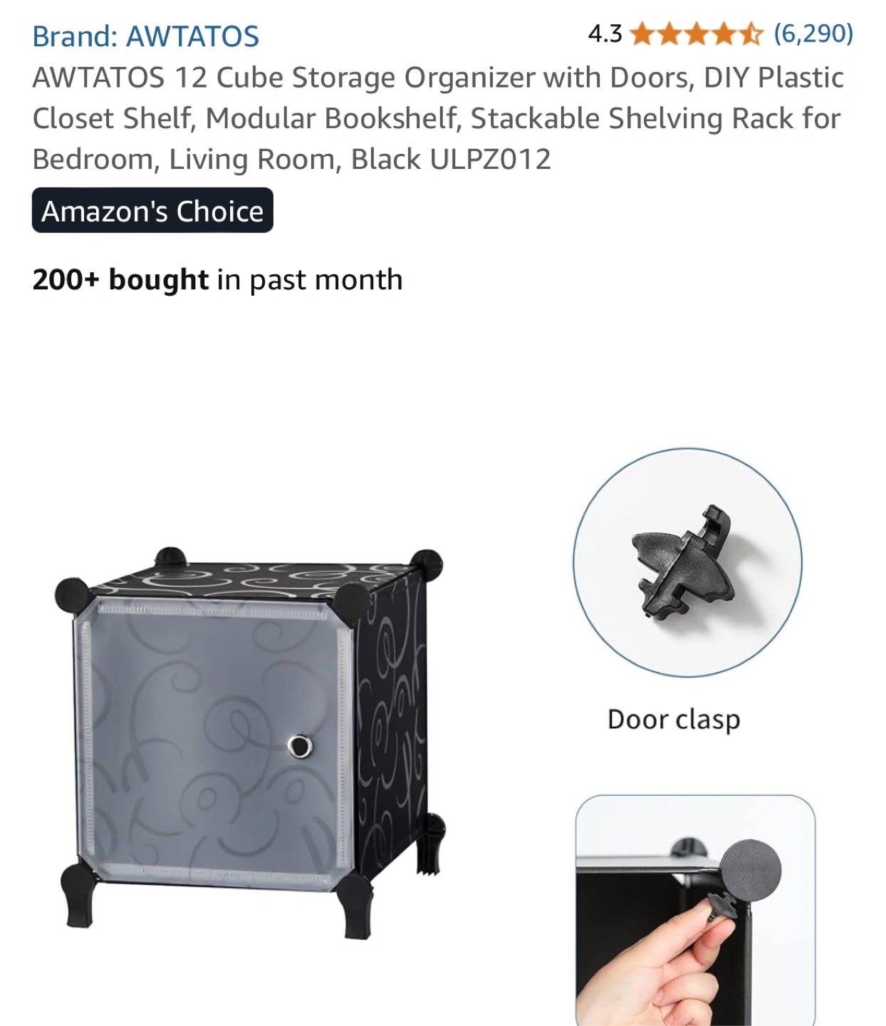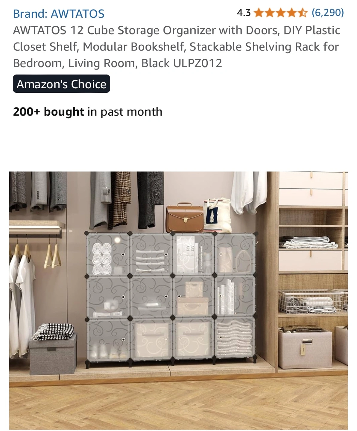 This AWTATOS 12 Cube Storage Organizer is perfect for adding some modular shelving to any room! It's a DIY plastic closet shelf that can be used as a bookshelf or shelving rack. Key features: - Stackable - Includes doors - Dimensions: 125cm/49.2in x 90cm/35.5in x 30cm/11.8in Included components: - Panels x 43 - Door panel x 12 - Door clasp x 12 - Feet Connectors x 8 - Circular Connector x 32 - Hammer x 1