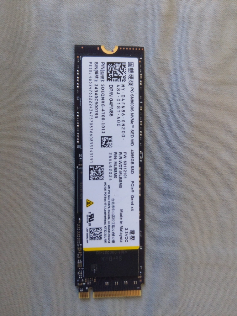 Selling a Western Digital SN800S NVMe 4TB SSD PCIe Gen4. It's in great condition and ready to boost your computer's performance. This is a PCIe Gen4 SSD, so it's super fast!