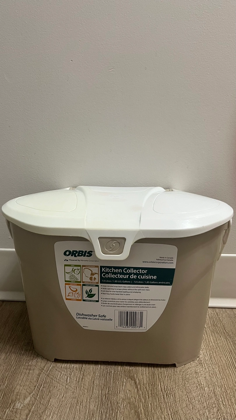 Selling an Orbis Kitchen Collector, perfect for composting! It holds 7.5 litres / 1.98 US gallons. It's in great shape and ready to help you with your kitchen waste