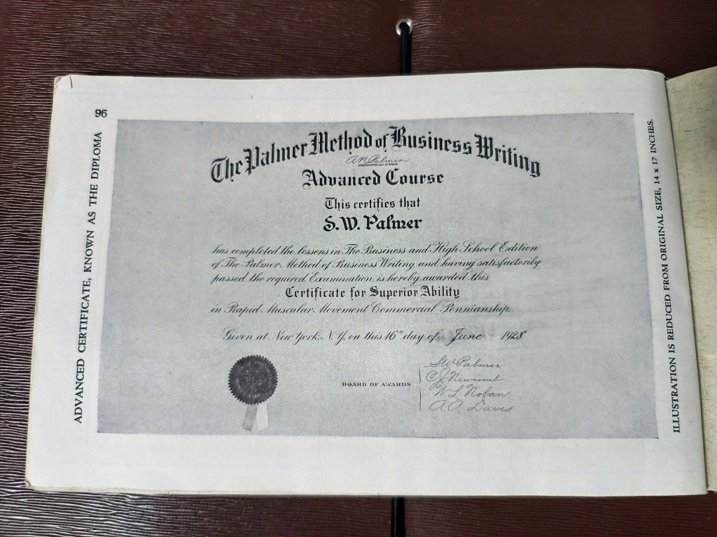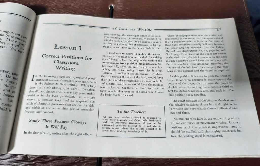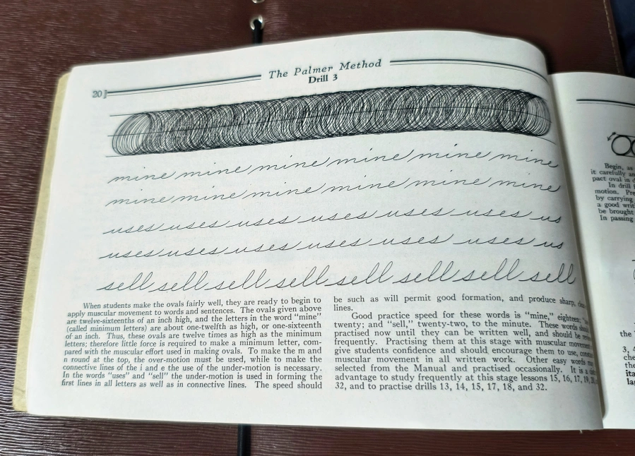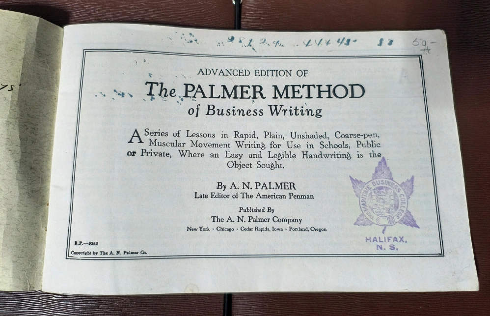 An advanced edition of "The Palmer Method of Business Writing." This book offers a series of lessons in rapid, plain, unshaded, coarse-pen, muscular movement writing for use in schools, public or private. It's a great resource for learning or improving your handwriting skills! (early 1900's). making this an Antique. This was used at The Maritime Business College, see stamp on front page in photos. ** Pick Up In Kentville **