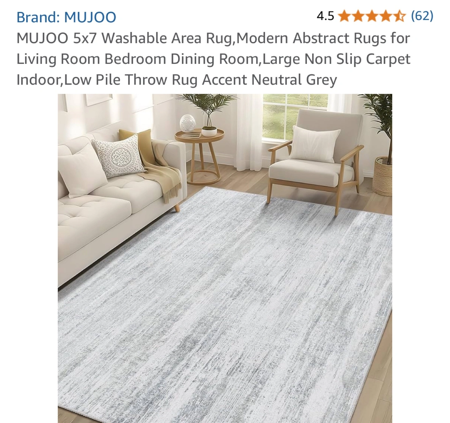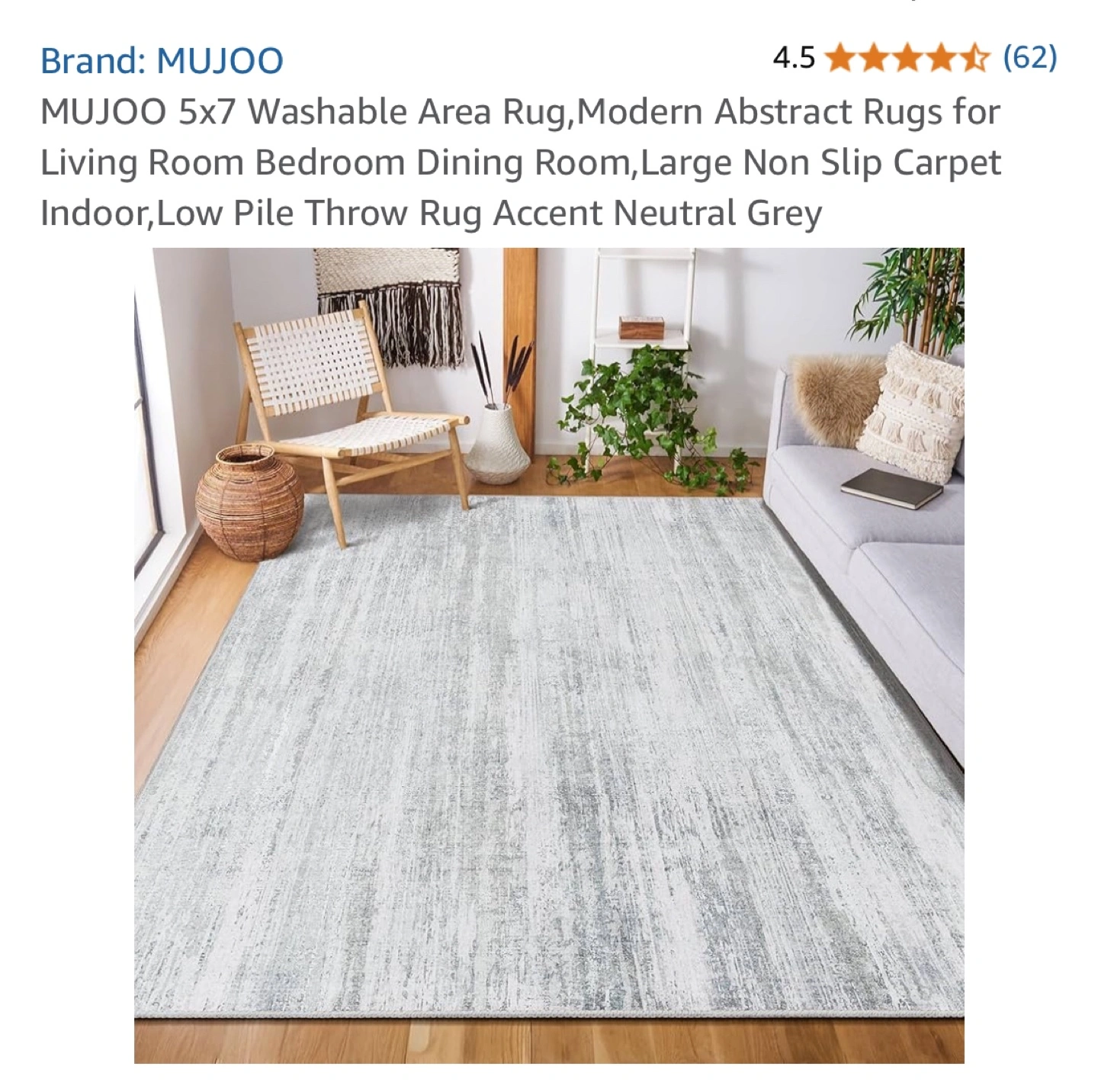 New Looking to add a touch of modern abstract style to your home? This MUJOO 5x7 area rug is perfect for your living room, bedroom, or dining room! It features: - A low pile throw rug accent in neutral grey - Non-slip backing - Machine washable design for easy cleaning - Soft and smooth to the touch - Tight edge It will not shed or fade after machine washing