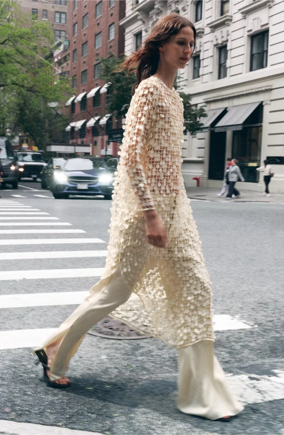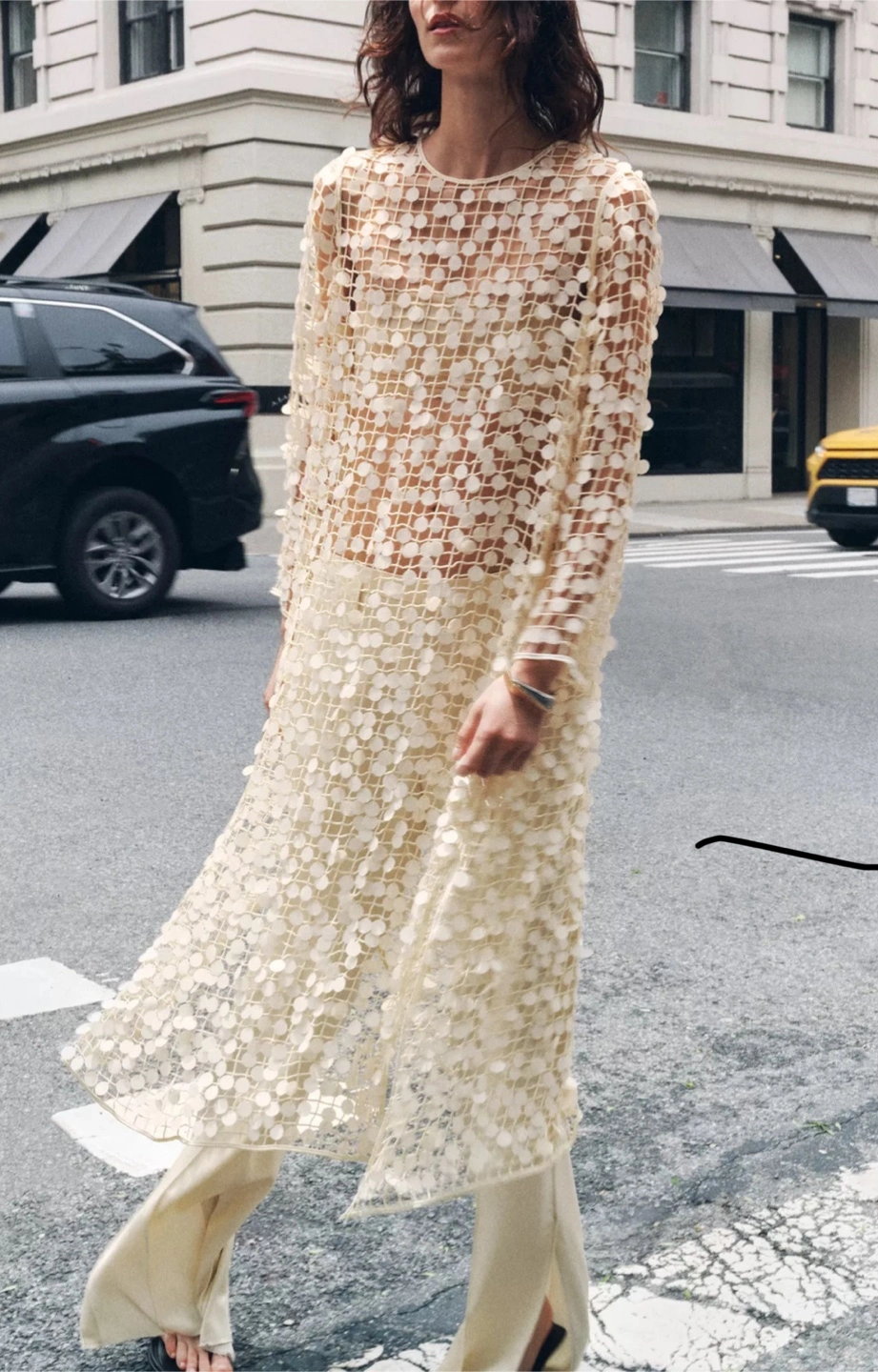Sheer Cream Long Sleeve Dress