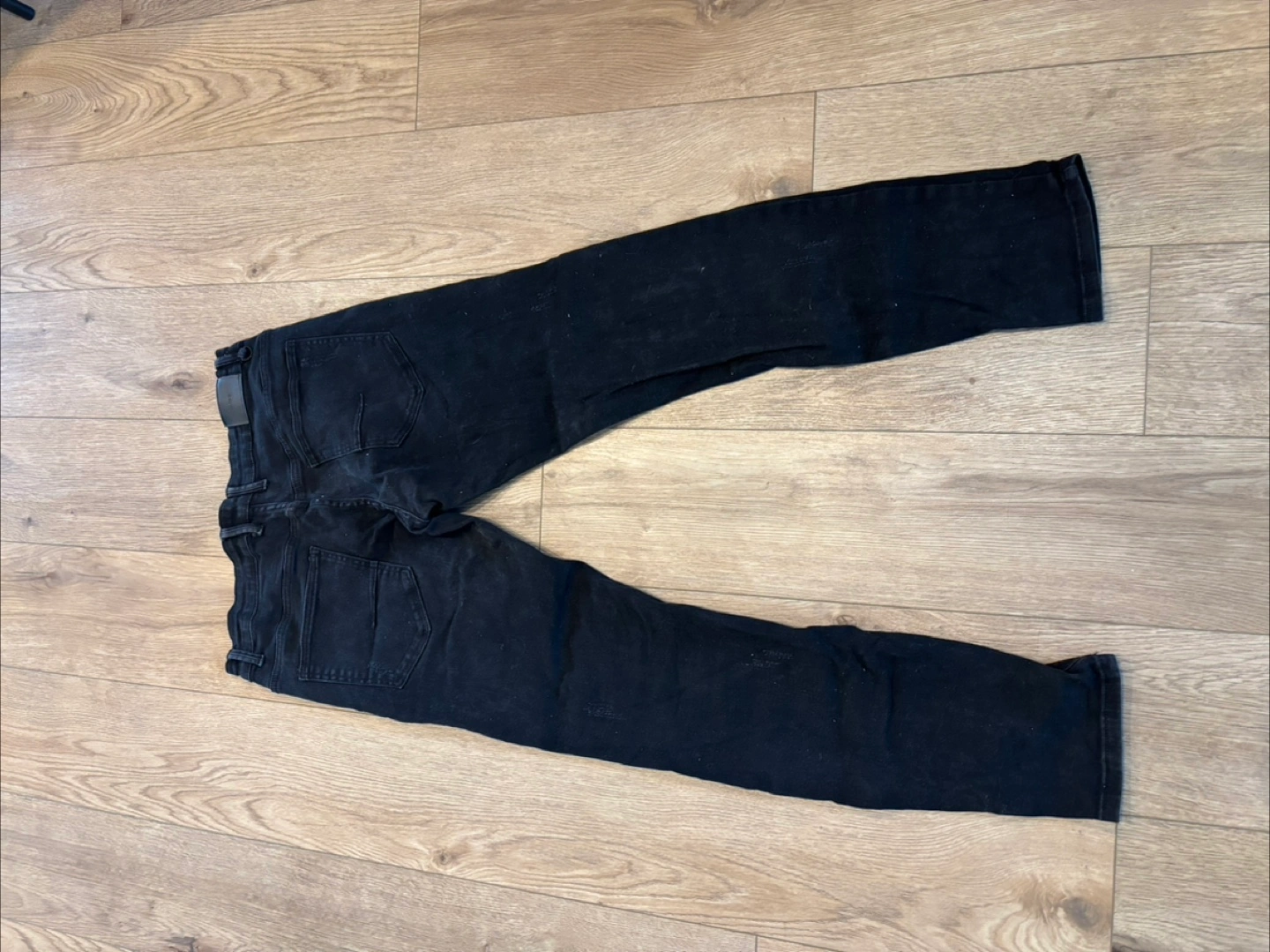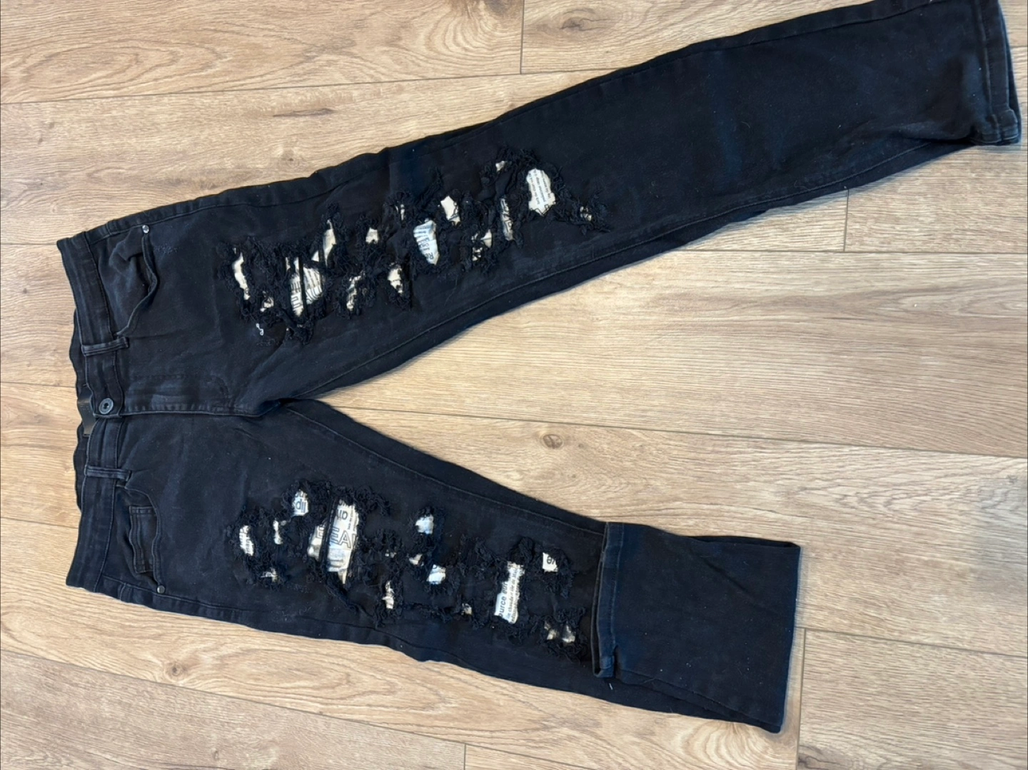 Selling a pair of black ripped jeans in size 36. They're in good condition and have a stylish, distressed look.
